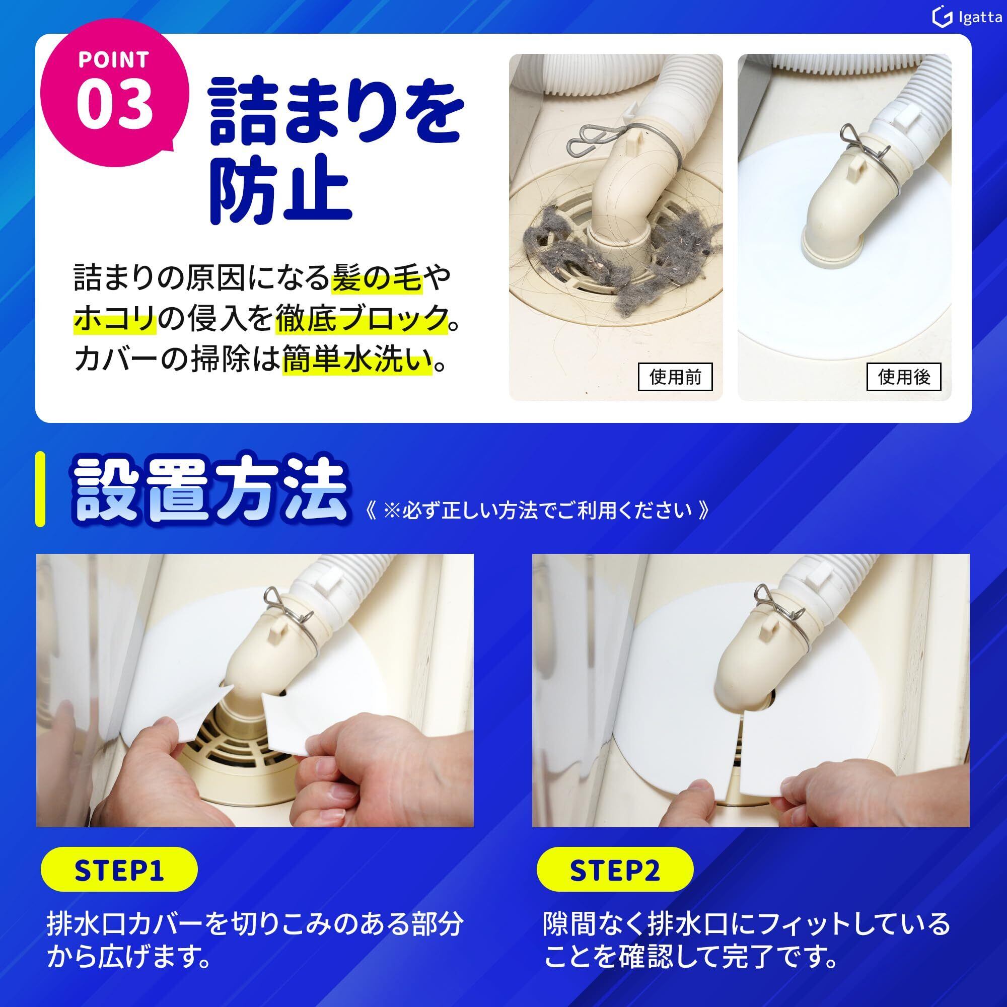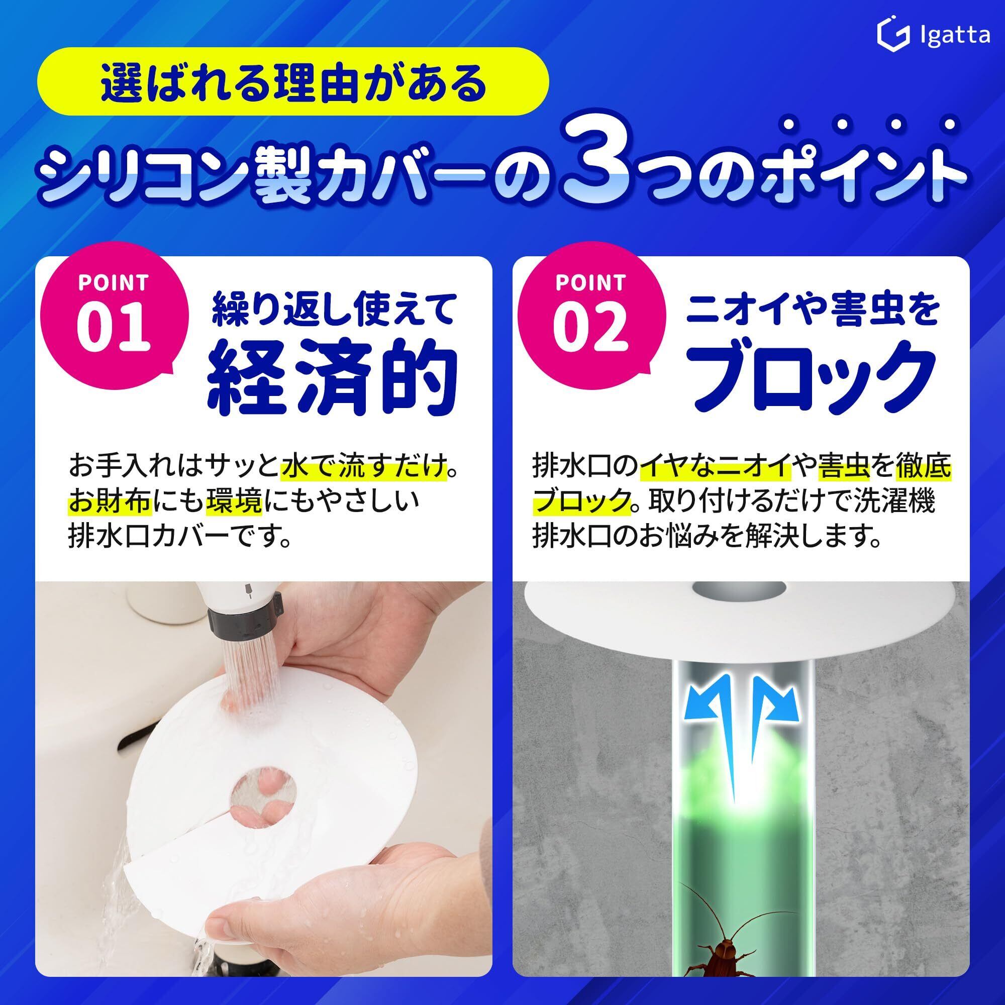 洗濯機排水口カバー 排水口カバー はいすいこう 防臭 2個入り Igatta(イガッタ) (ホワイト2枚)