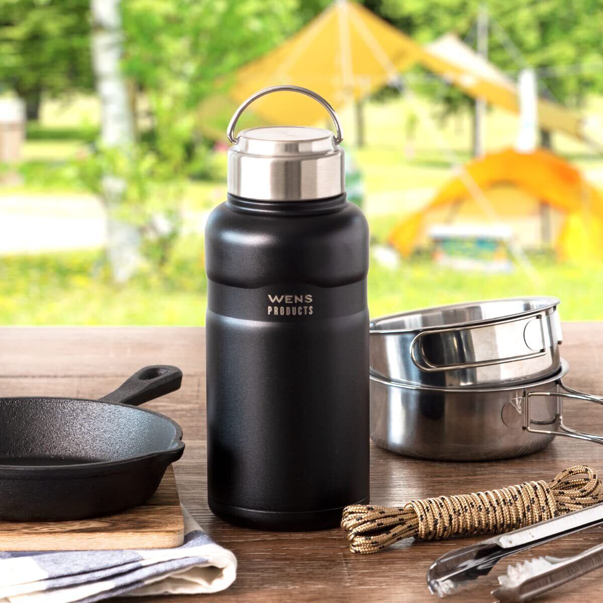 アトラス 水筒 750ml 保冷 保温 真空断熱 ステンレス マグボトル 軽量 直飲み 洗いやすい アウトドア WENS ウェンズ ブラック 白湯 AWPB-750BK