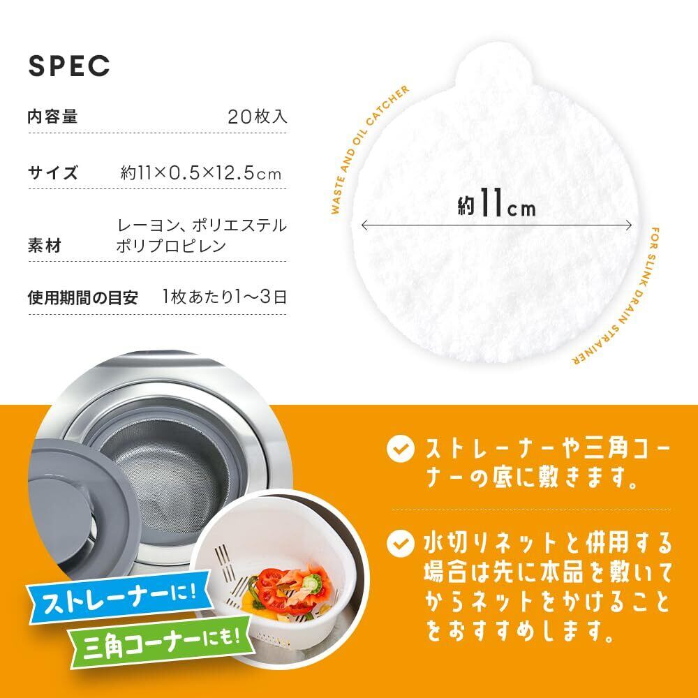 【使用方法】①ストレーナーや三角コーナーの底に敷いてください。②シートのサイズが大きすぎたり、形状が合わない場合は、適当な形にハサミでカットして使用してください。③水切りネットと併用する場合、水切りネットの下に敷くことをおすすめします。