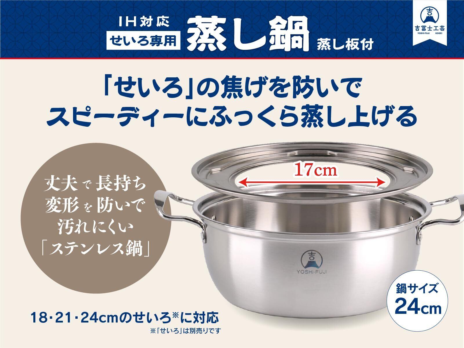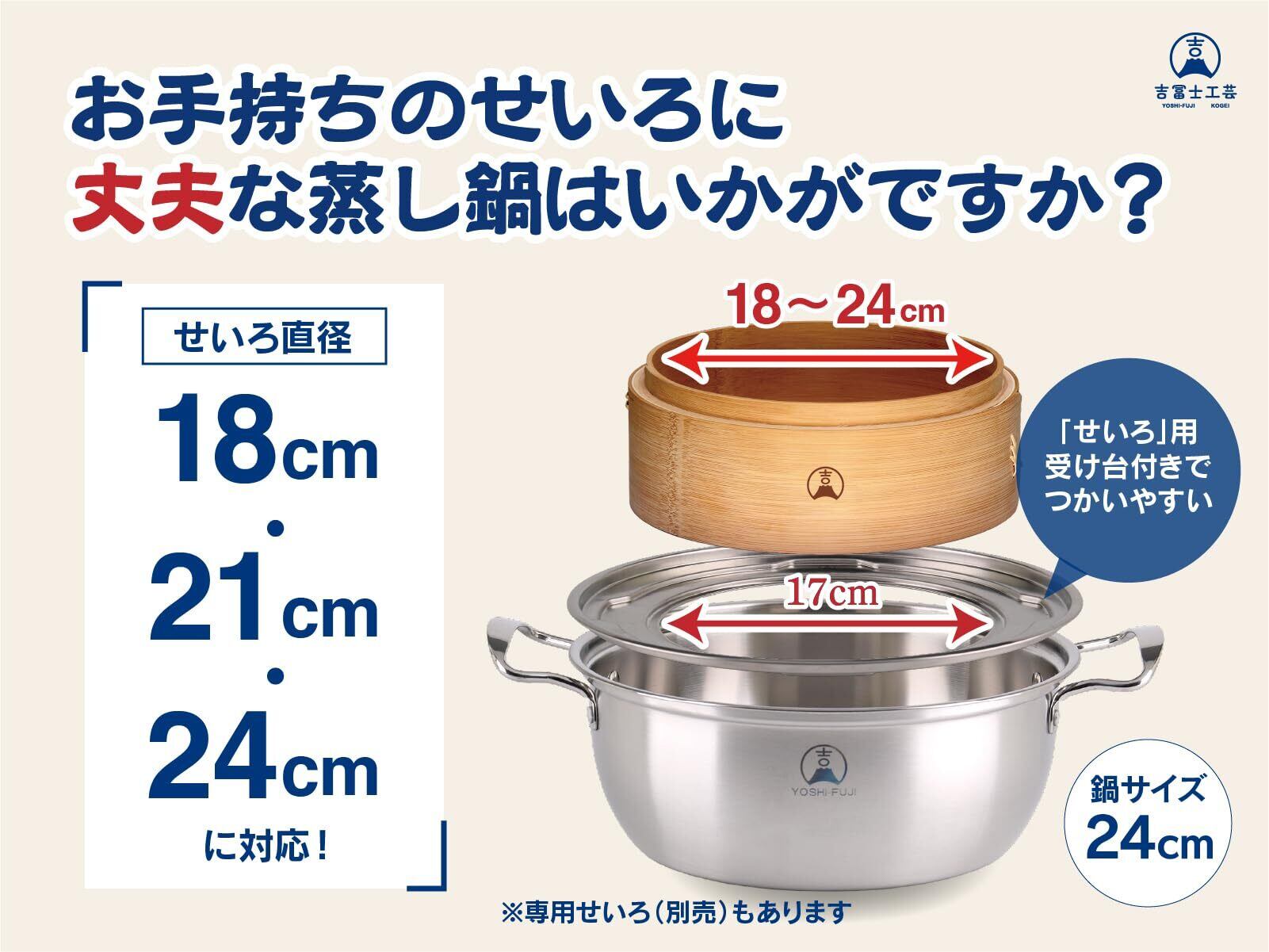 ◆ステンレス製せいろ専用用蒸板)は、直径24cmでIH調理器に対応し、15cm、18cm、21cm、24cmサイズのせいろにも対応しています。