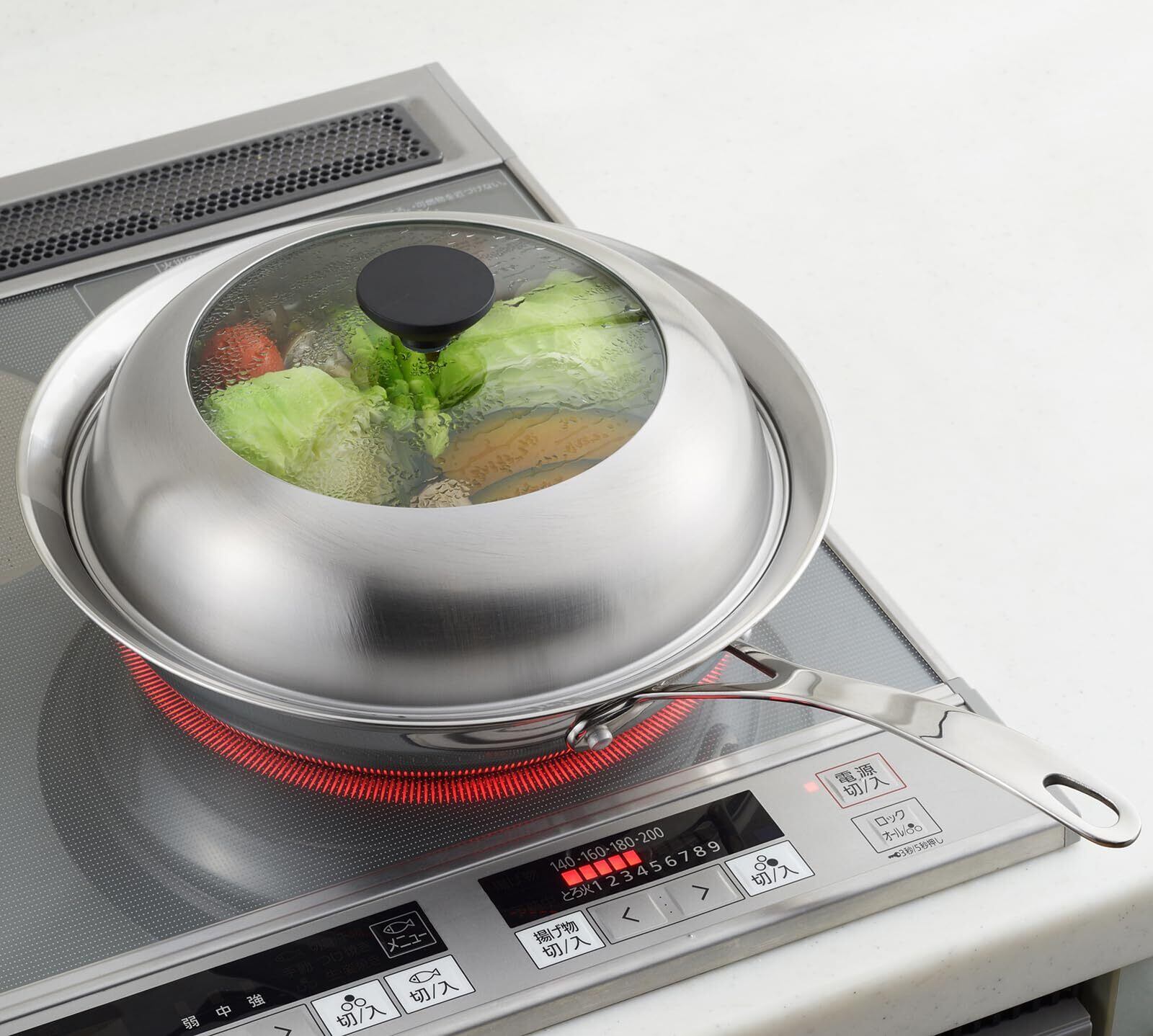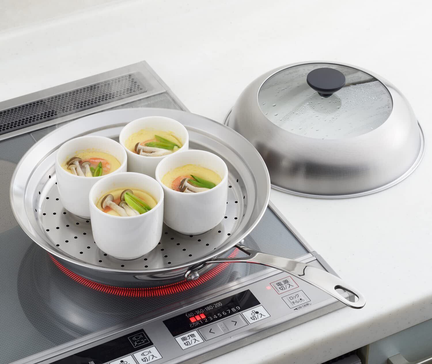 ヨシカワ 見える!フライパン用蒸し器 24~26cm用 ガラス蓋付き 蒸しプレート フライパンにのせるだけ ステンレス 蒸し料理 燕三条 日本製 YJ3212