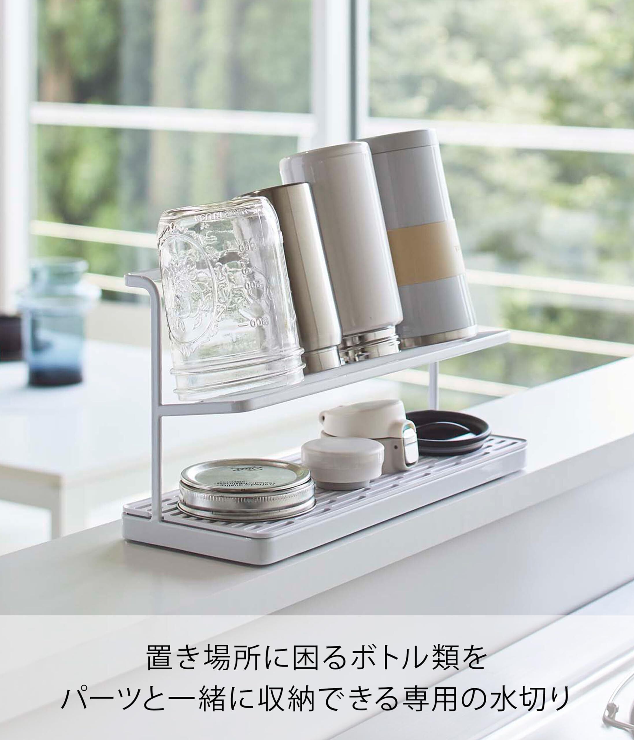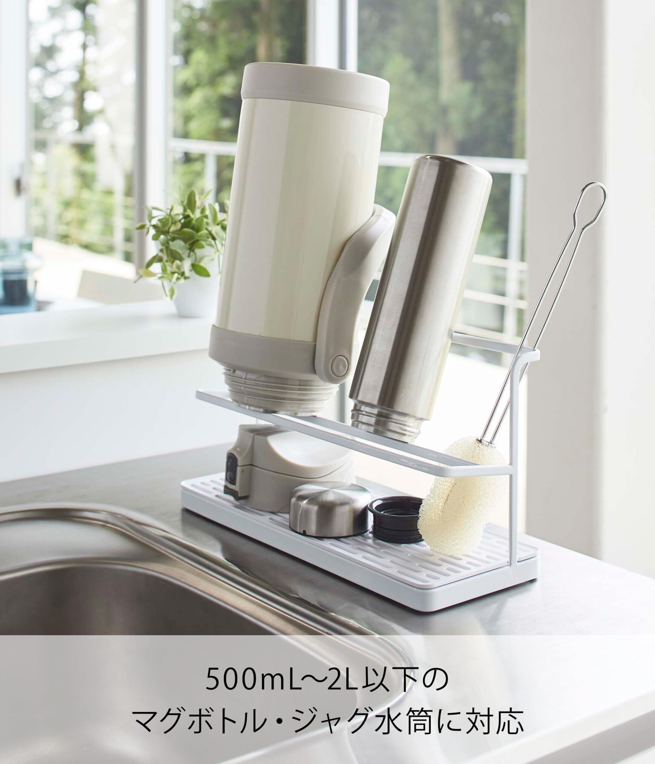 山崎実業(Yamazaki) ワイド ジャグボトルスタンド ホワイト 約W32XD12XH17cm タワー tower 水筒 スタンド 水切りラック 5409