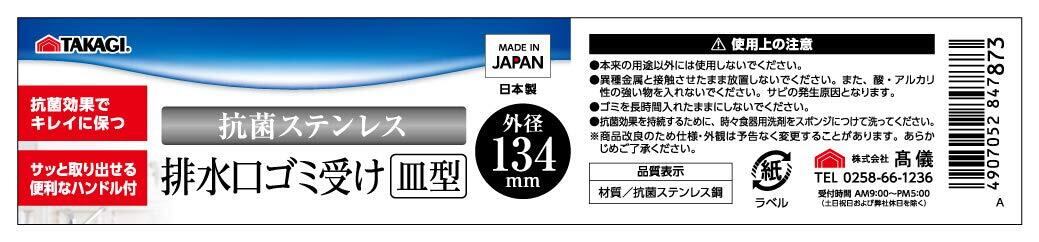 高儀 抗菌 ステンレス 排水口 ゴミ受け 皿型 TAKAGI 日本製 キッチン 台所 流し用 シンク 水切り ストレーナー カゴ シルバー たかぎ