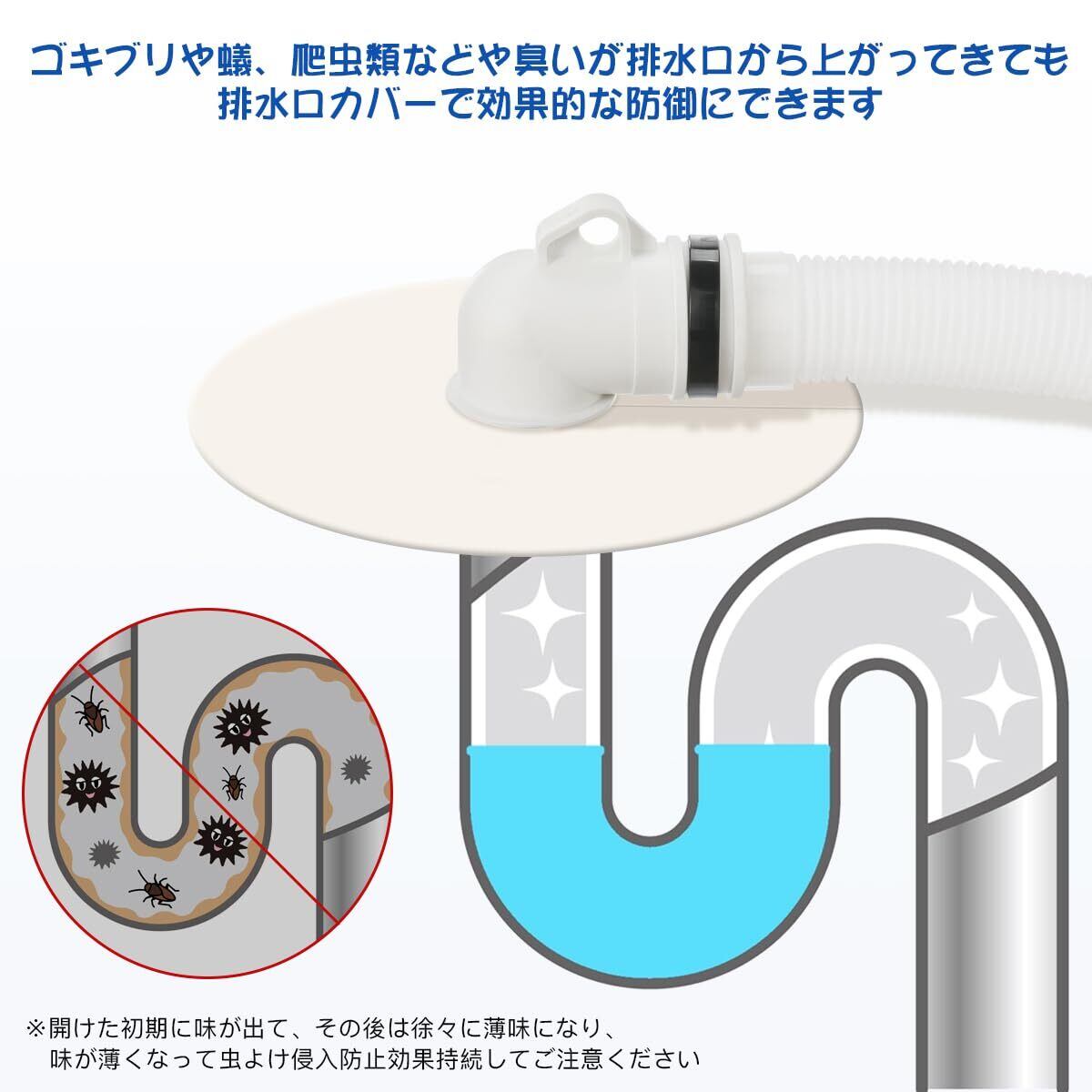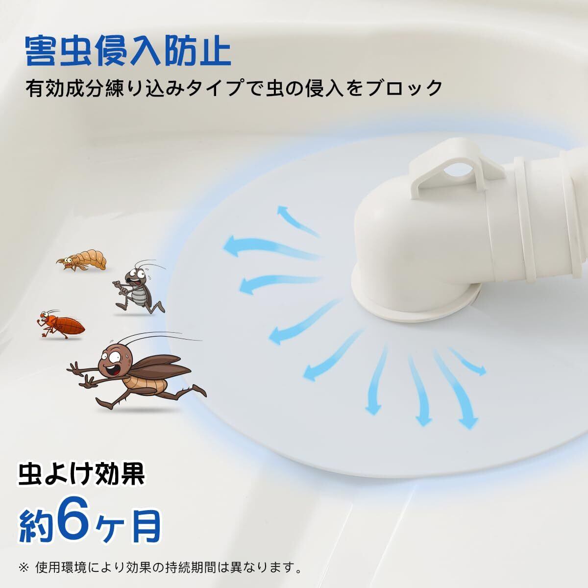 【害虫侵入防止】:有効成分練り込みタイプで虫の侵入をブロック。ゴキブリや蟻、爬虫類などや臭いが排水口から上がってきても排水口カバーで効果的な防御にできます。(虫よけ効果は約6ヶ月)