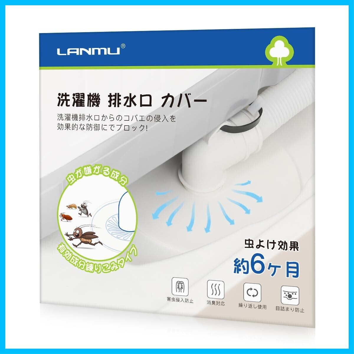LANMU 洗濯機排水口カバー 有効成分練り込み シリコン製 防臭 防虫 詰まり防止 繰り返し使用 ホワイト 洗濯機 ゴキブリ避け排水溝カバー 1枚入り