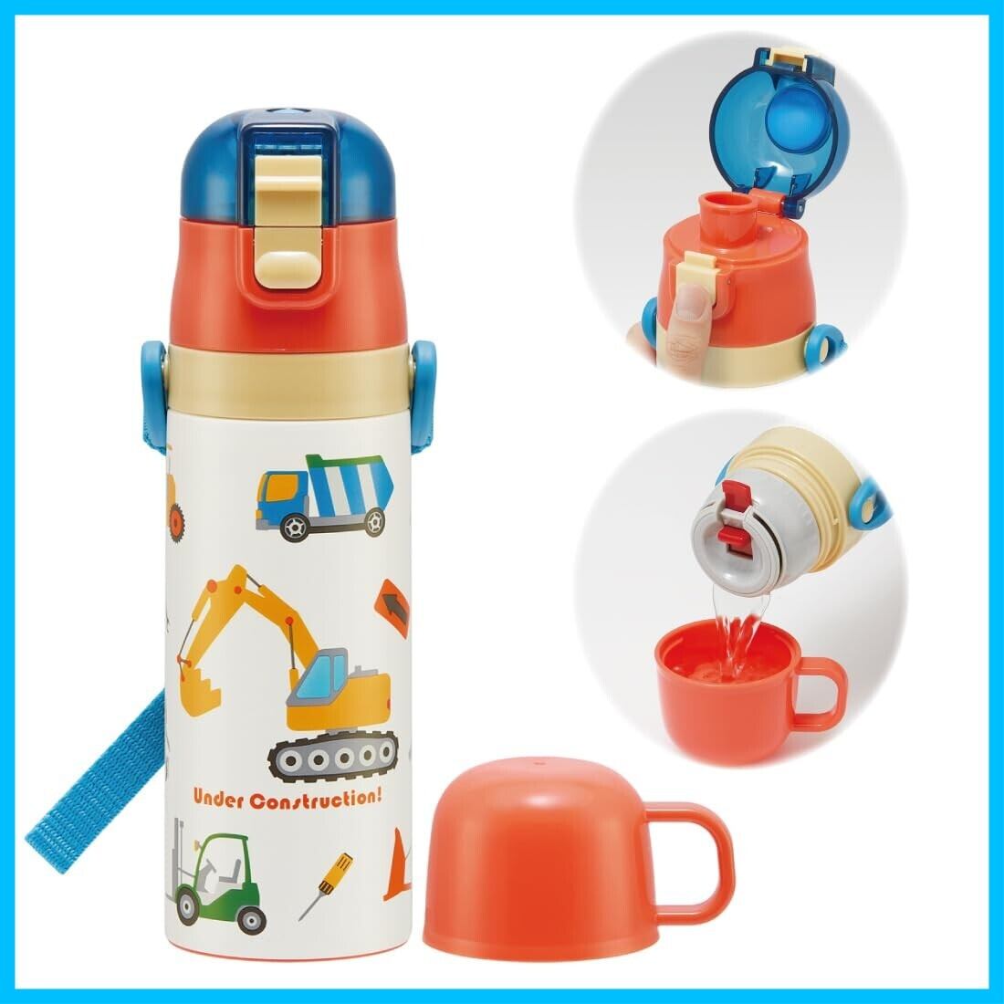 スケーター(Skater) 水筒 子供用 2WAY 直飲み 470ml コップ飲み 430ml はたらくクルマ 男の子 ステンレス 保温保冷 軽量 waterbottle スポーツボトル キッズ こども 水瓶 SKDC4-A