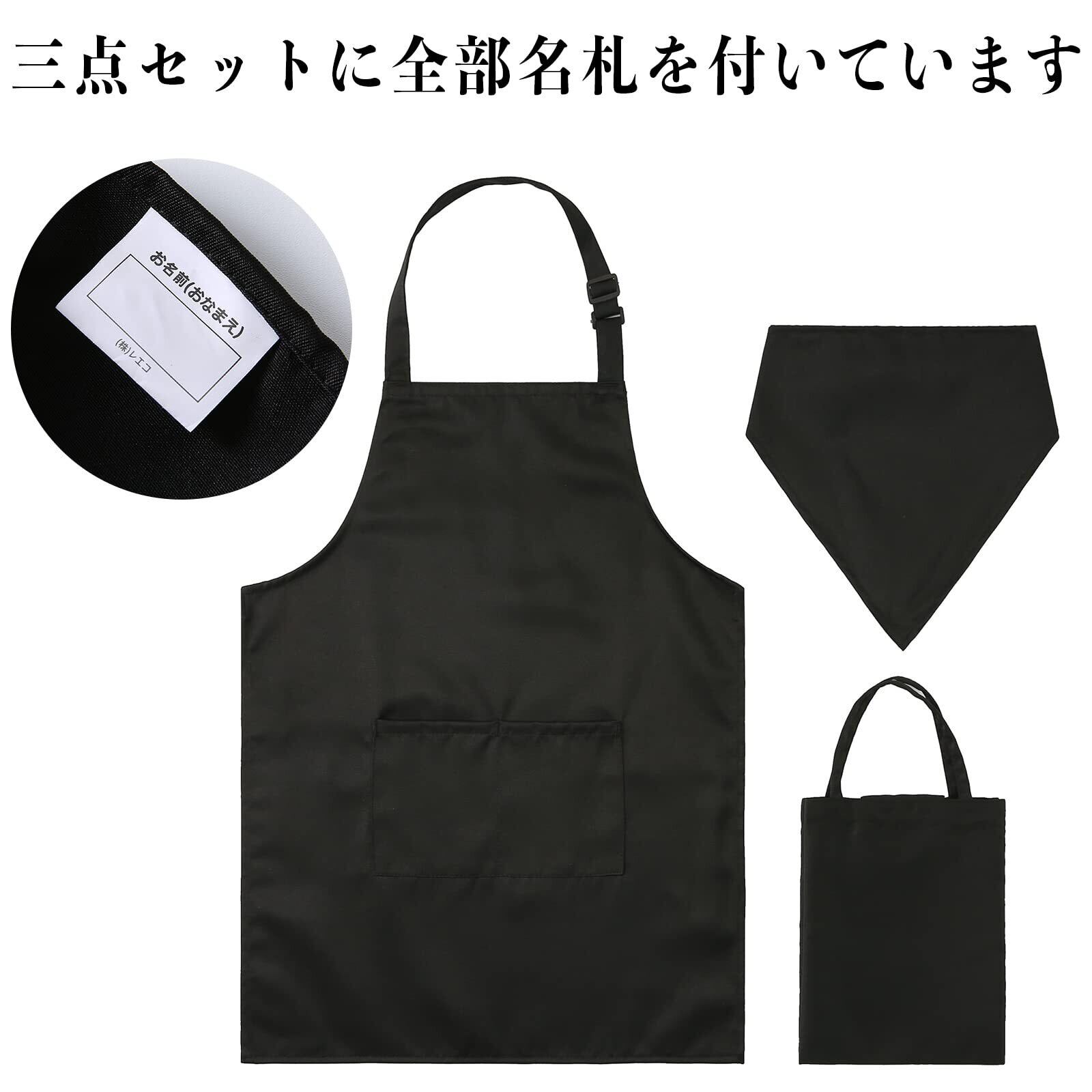 【3点セット&撥水加工済】子ども用エプロンセットにはエプロン、三角巾、収納袋が含まれています。各商品はシワになりにくい素材でできており、撥水加工済です。