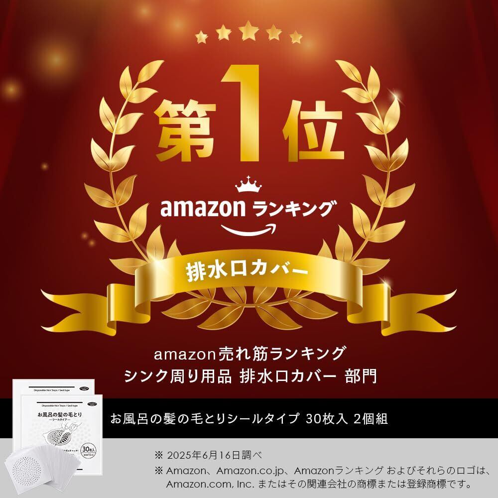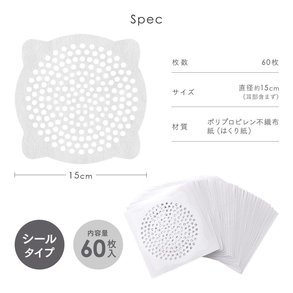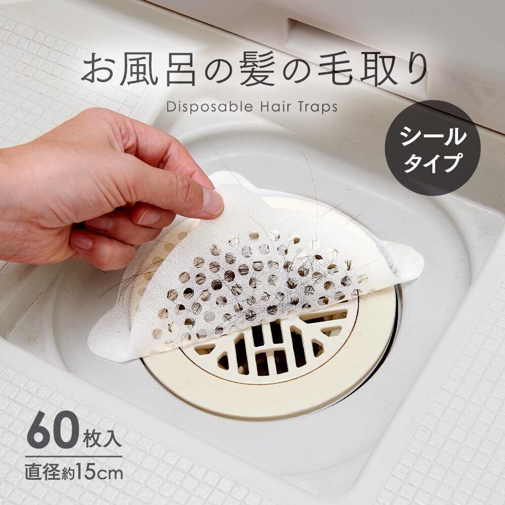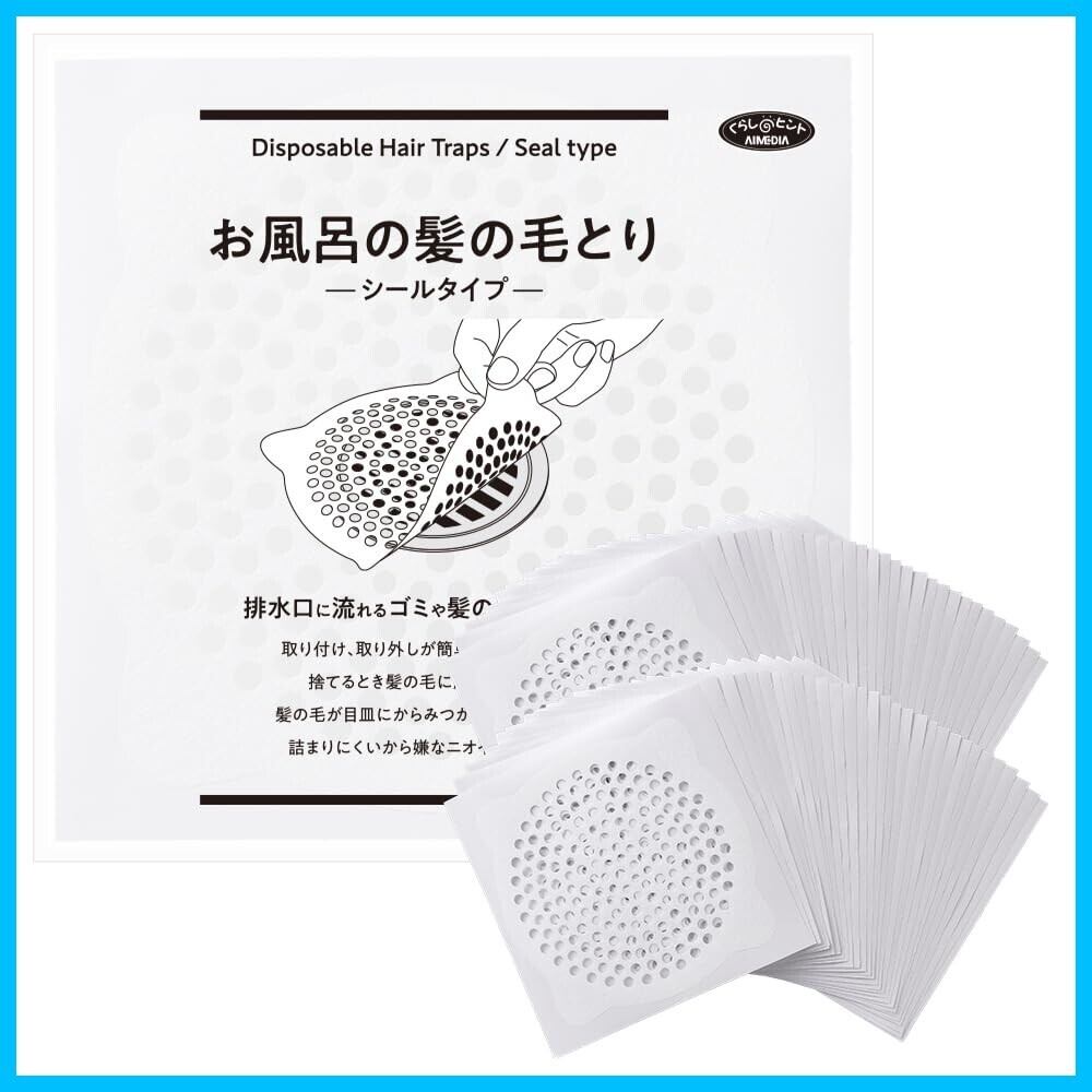 アイメディア(Aimedia) 排水口シール 60枚入 髪の毛取りシート 排水口カバー 排水溝用 お風呂 浴室 掃除 衛生的 お風呂の髪の毛取りシールタイプ