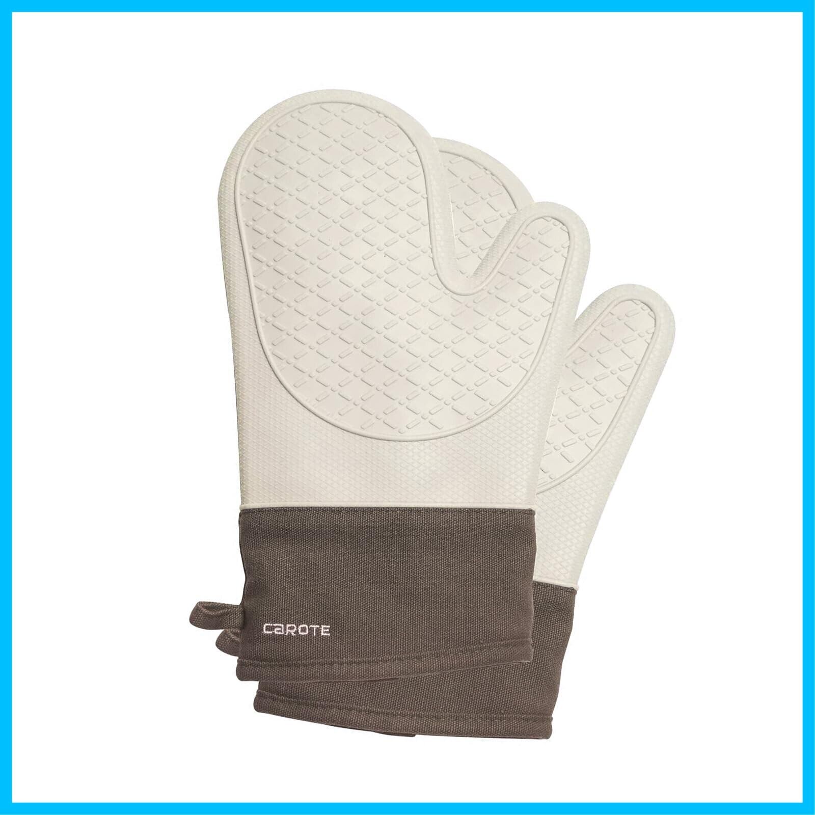 CAROTE カローテ 耐熱ミトン オーブンミトン 鍋つかみ 耐熱グローブ オーブングローブ300℃耐熱 やけど防止 滑り止め シリコン製 汚れが目立たず 耐久性 コンベクション 電子レンジ オーブンレンジ ケーキを焼く 鍋料理 ホームベーカリー オーブン料理 グリル グリラー バーベキュー グレージュ( 2枚セット)
