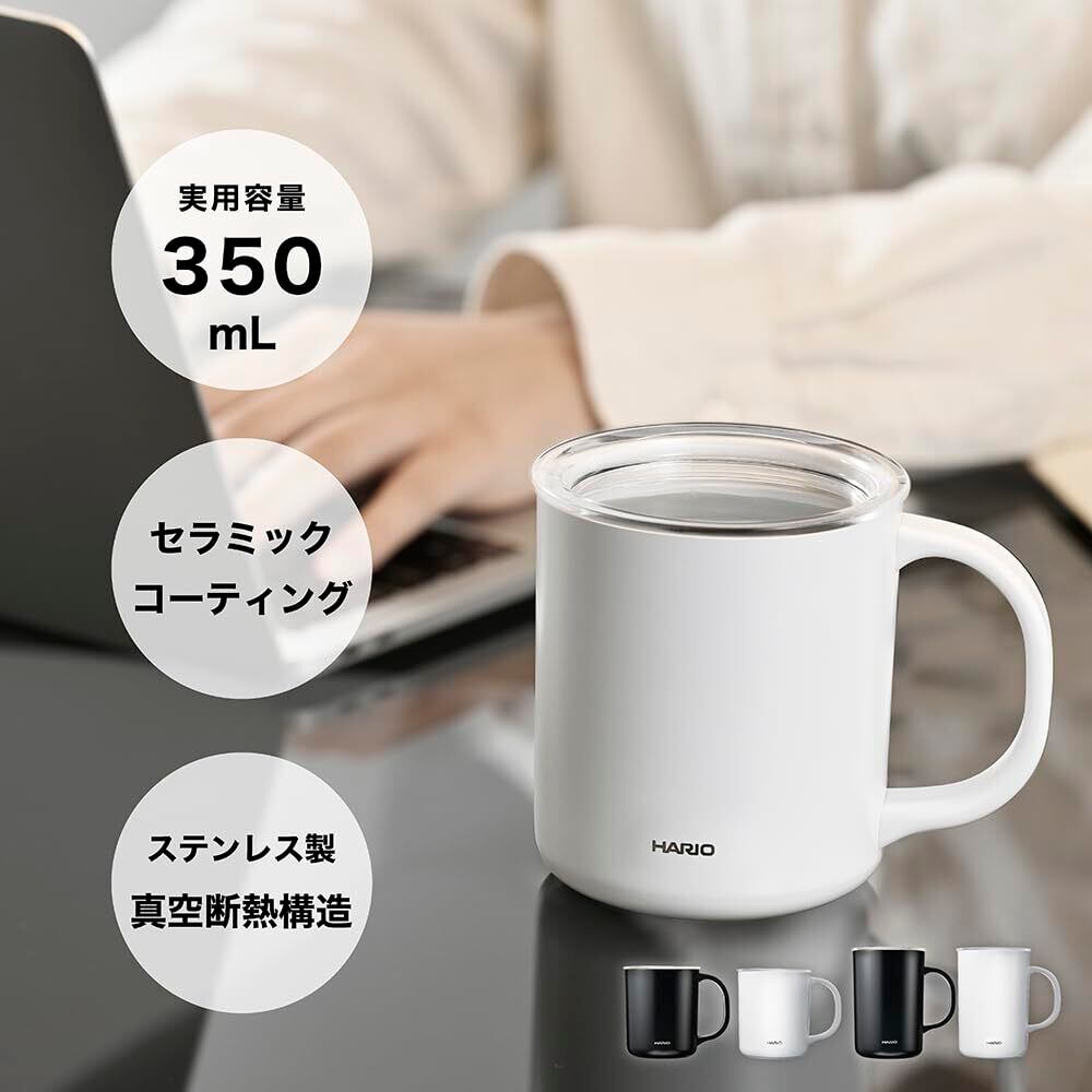 HARIO(ハリオ) セラミックコーティング 真空二重保温マグ ホワイト 350ml フタ付き CMG-350-W