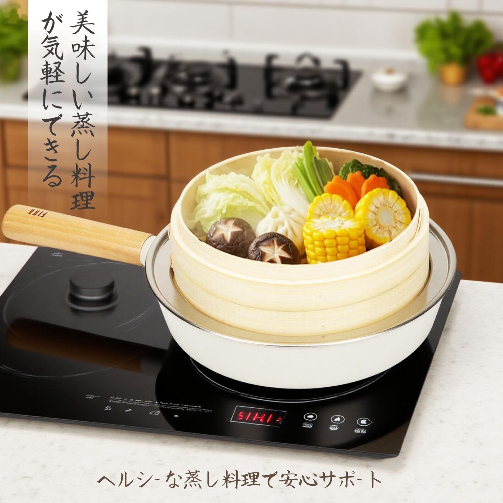 【鍋自由選択】両手鍋、片手鍋、フライパンなど様々な鍋にフィット。一般的な家庭用蒸锅やせいろ蒸し器に幅広く対応できる汎用性の高い設計です。