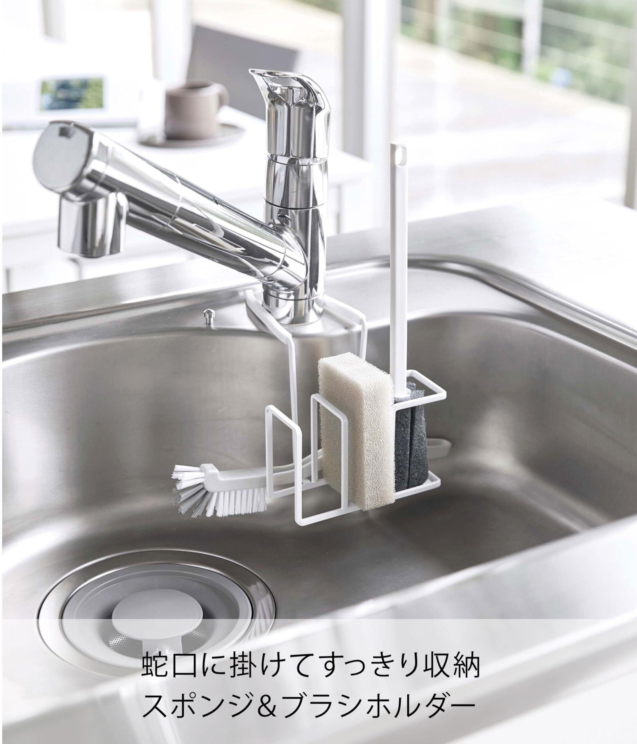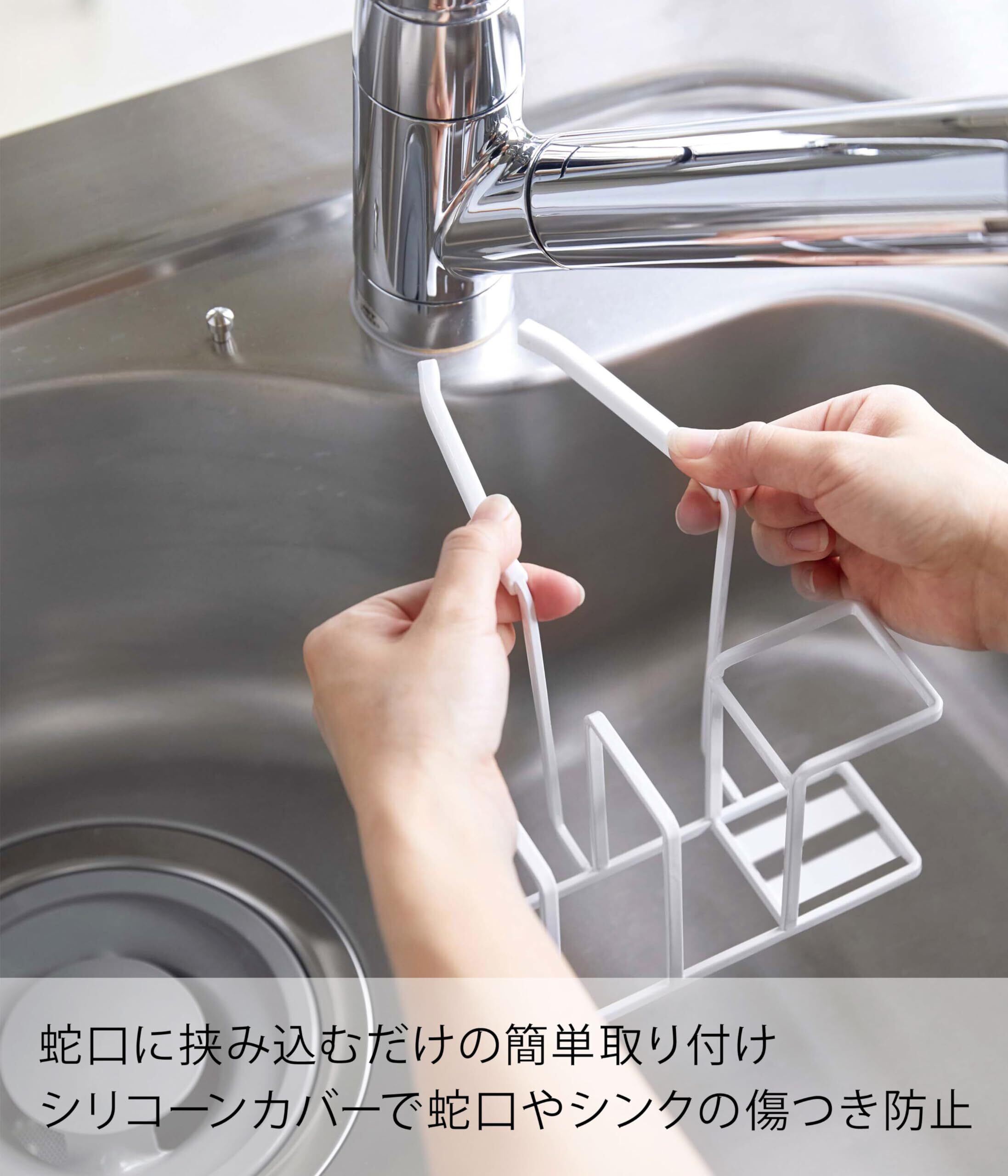 蛇口に掛けるだけの、ずれ落ちないスポンジ & ボトルブラシホルダー。