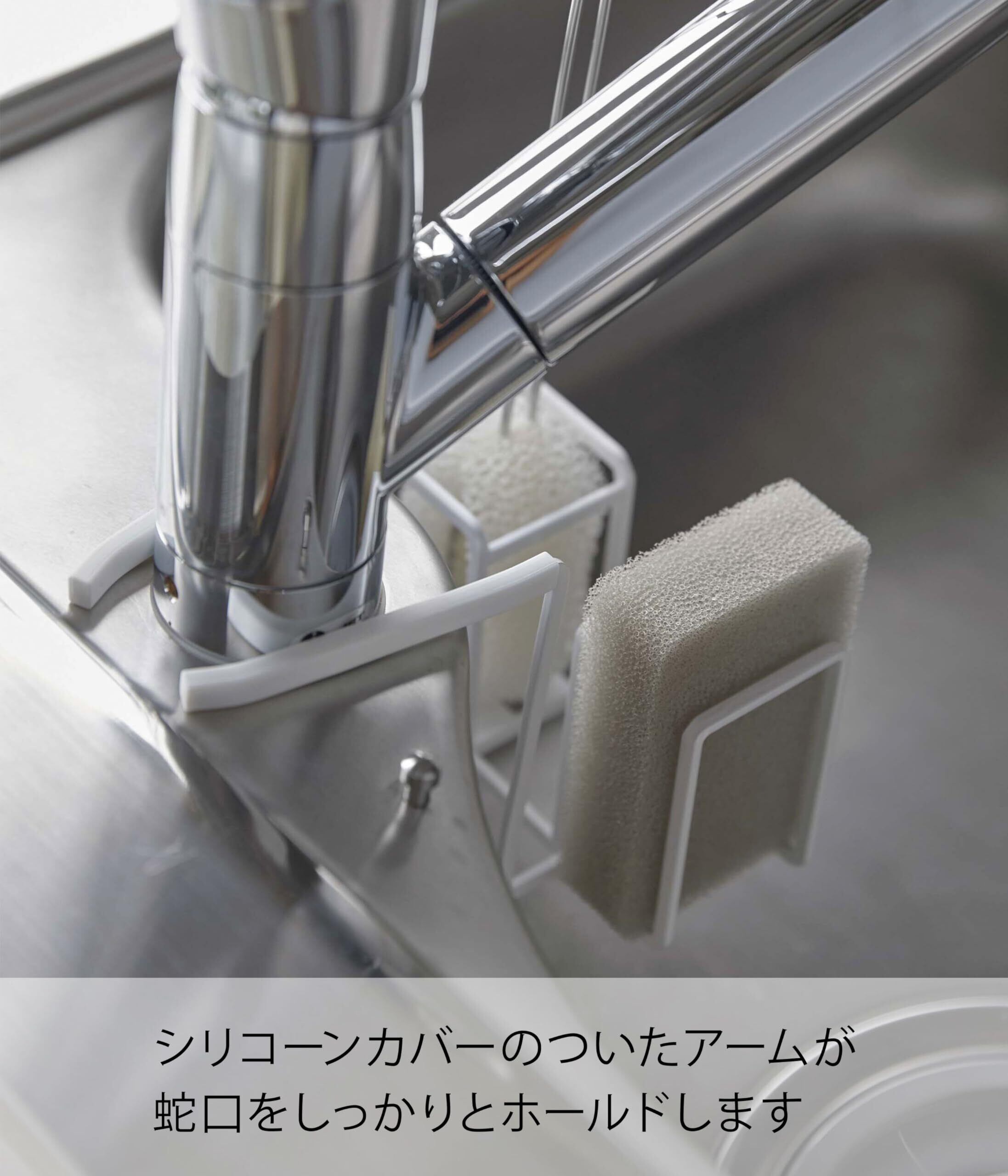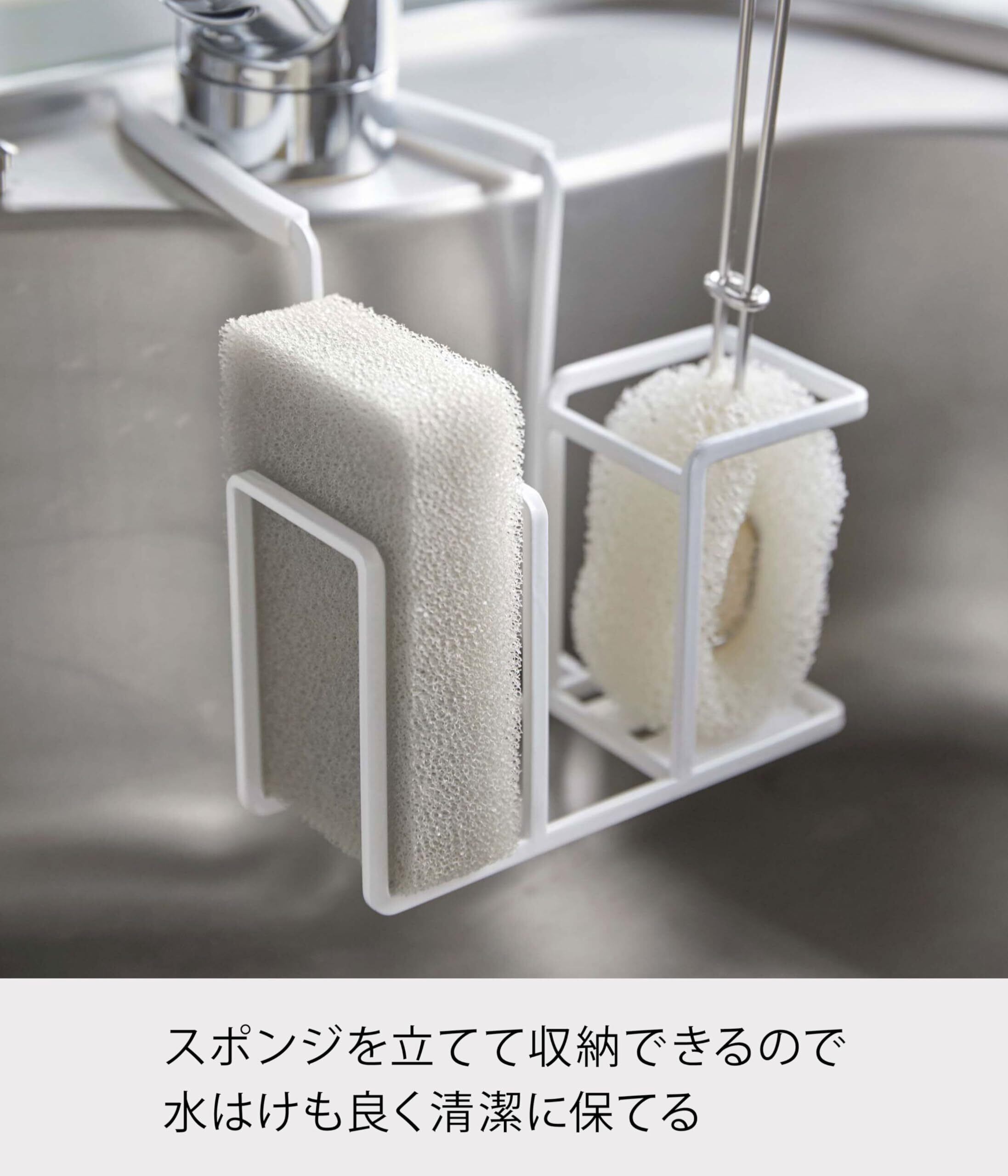 山崎実業(Yamazaki) 蛇口にかけるスポンジ&ブラシホルダー タワー ホワイト 約14X17.5X13cm スポンジ置き スポンジラック スタンド 5080
