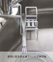 スポンジ・ボトルブラシと同時に排水口ブラシなども収納可能。