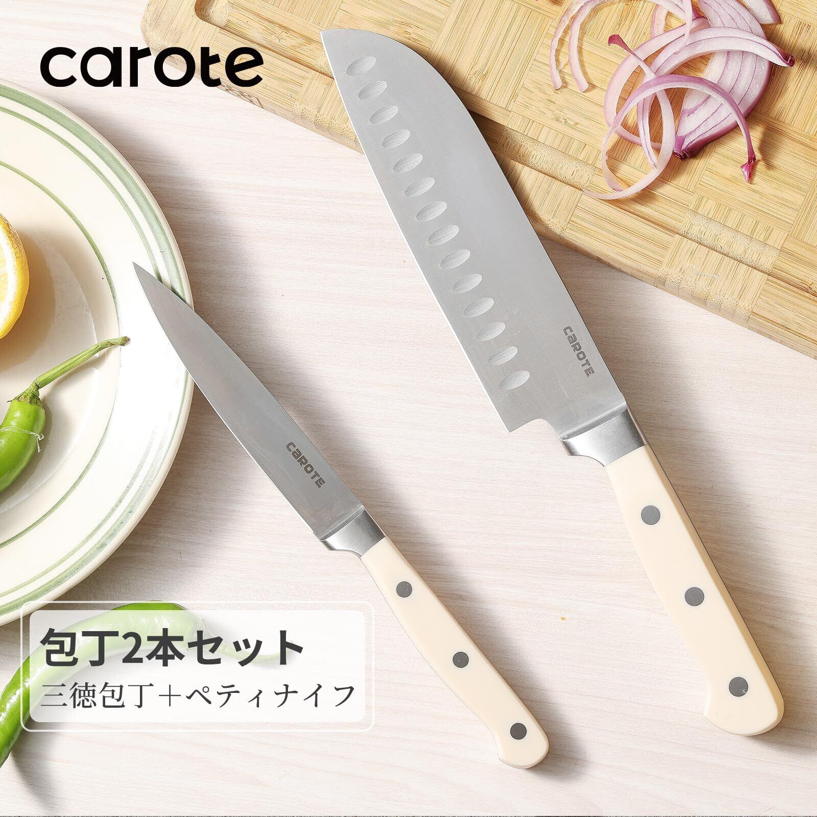 CAROTE カローテ 三徳包丁 165mm ペティナイフ 135mm 2点 セット ステンレス 鋼 食洗機対応 切れ味が良い ナイフ 刃渡り 多機能 万能包丁 左利き 両刃 肉切り 野菜切り 魚切り パン切り包丁 家庭用 プレゼント(2点セット)