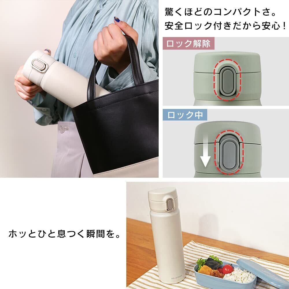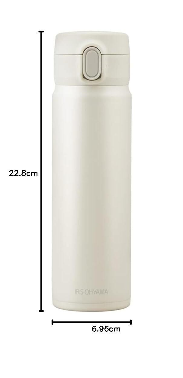 アイリスオーヤマ 水筒 500ml 真空断熱6時間キープ 片手で開け飲みしやすい ワンタッチ オフィスで使いやすい 直飲み 丸洗い出来てお手入れラクラク ステンレスマグボトル SM-O500 ペールホワイト
