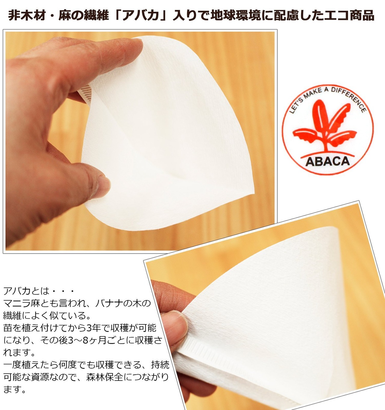 ●非木材(マニラ麻)使用の環境にやさしいフィルターです。