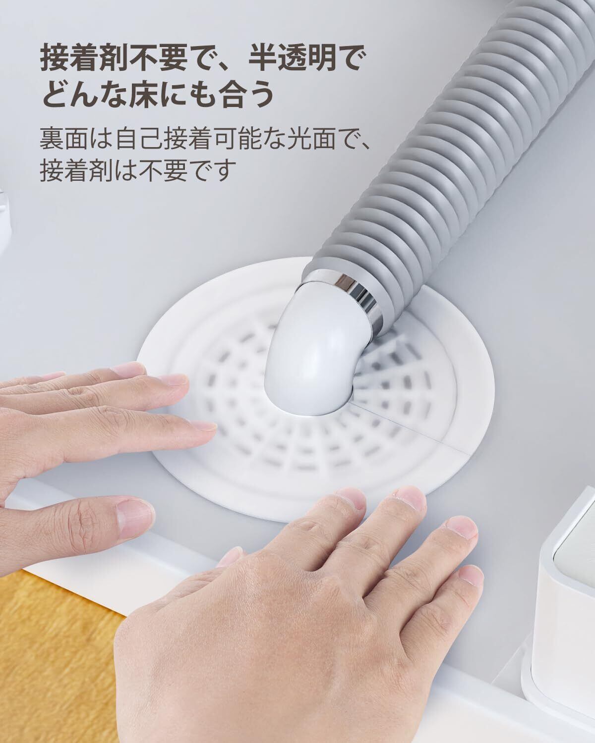 【半透明シリコンで目立ちにくい】半透明デザインのため床や洗濯機まわりになじみやすく、不透明タイプに比べて汚れや詰まりの兆候に気づきやすい設計。日常のお手入れ管理にも役立ちます。
