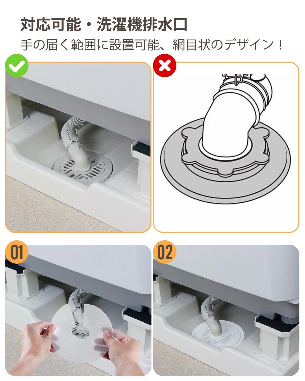 【洗濯機排水口の臭い・虫・詰まり対策に】洗濯機排水口から上がってくる嫌な臭いや、虫の侵入、髪の毛やホコリによる詰まりを防止。16×16cmサイズで一般的な洗濯機排水口に対応。置くだけで洗濯機まわりを清潔に保ちます。