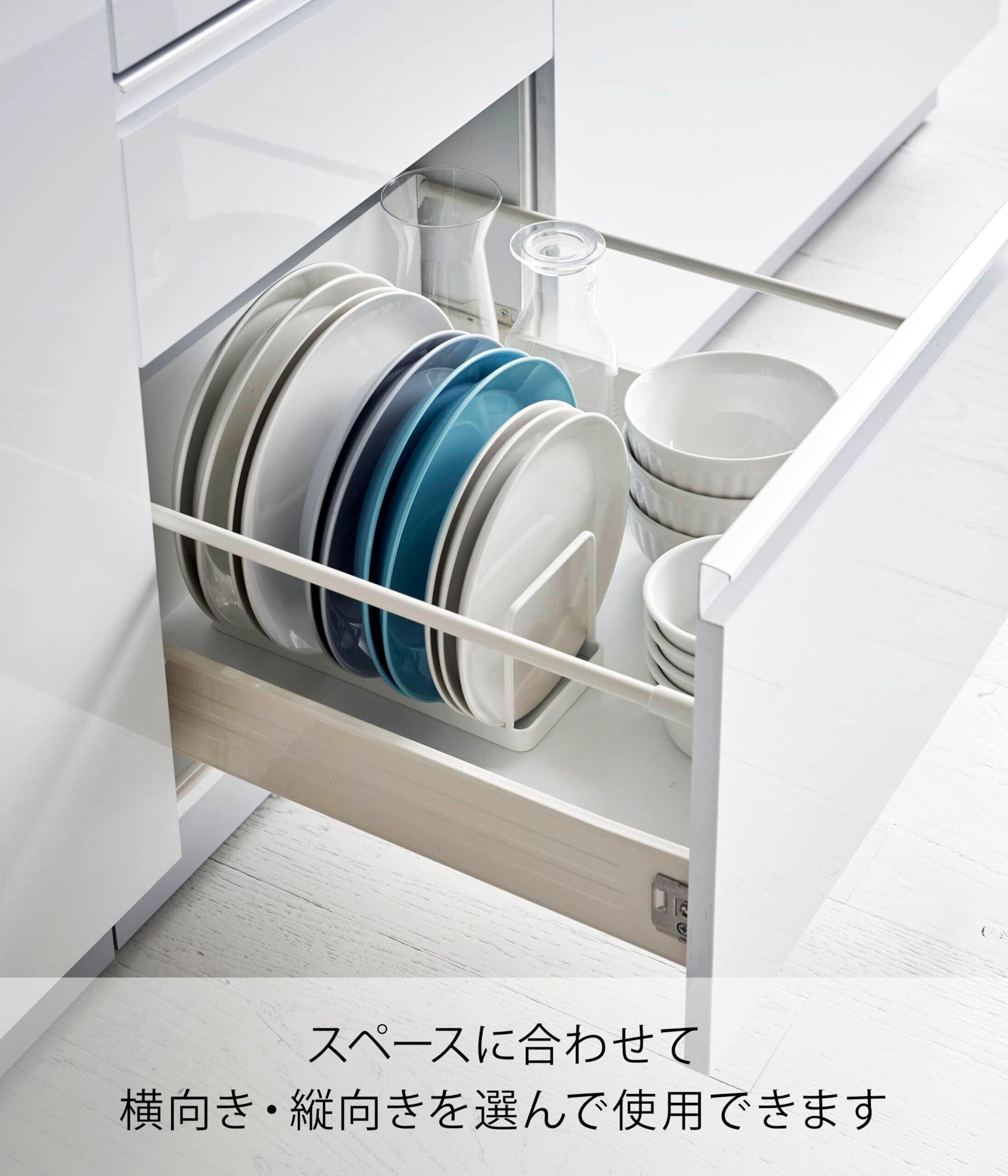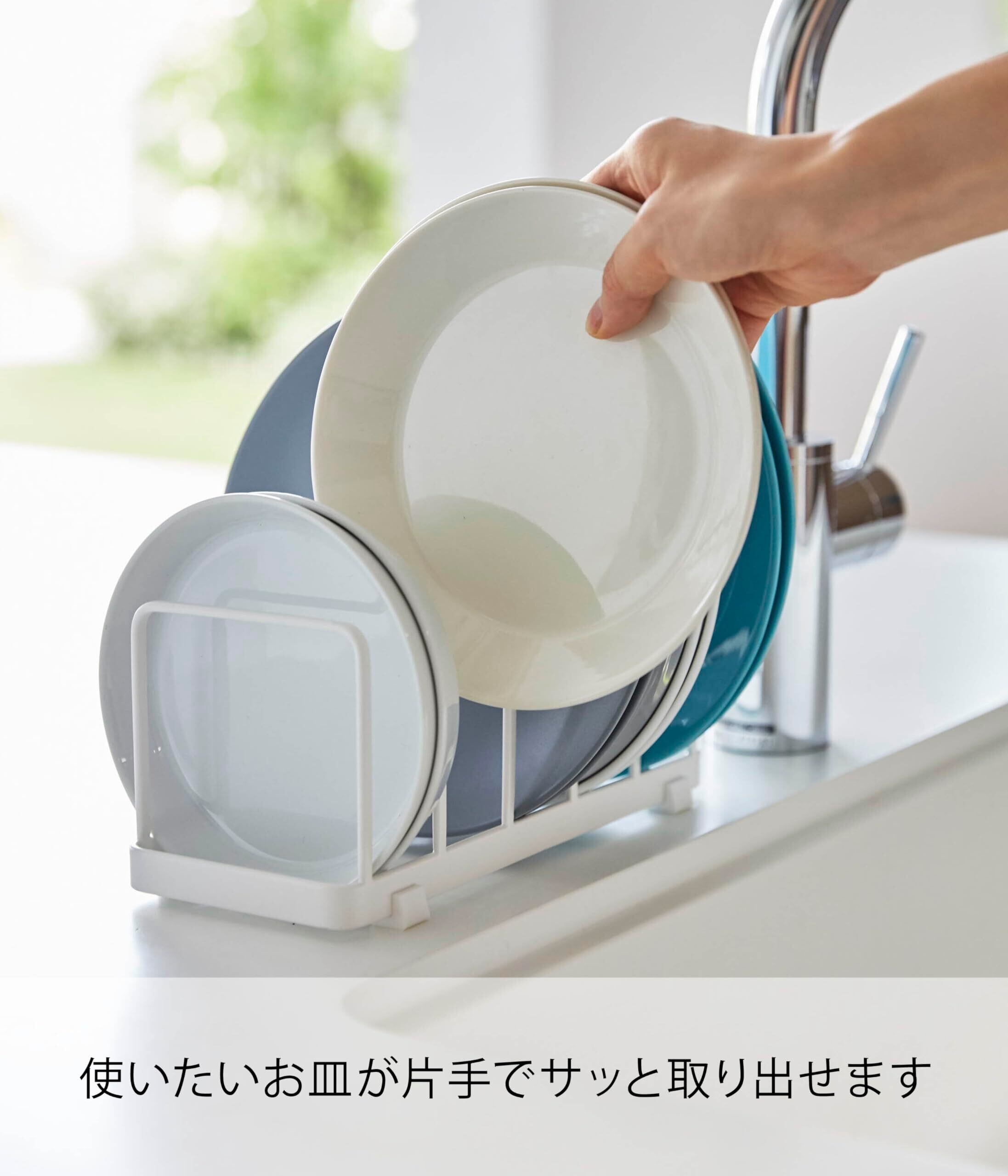 山崎実業(Yamazaki) ディッシュスタンド ホワイト 約W24XD10XH10cm プレート 片手でサっと出せる お皿立て 4747