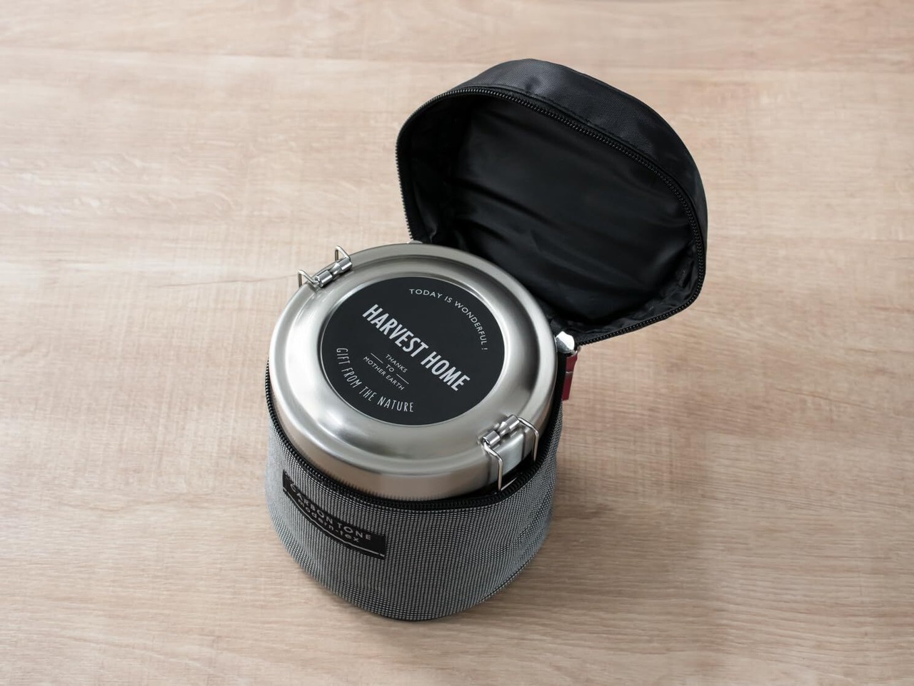 真空ステンレスランチジャー840ml(STLB2)専用の丸形のバッグです。シックなデザインでかっこいい!