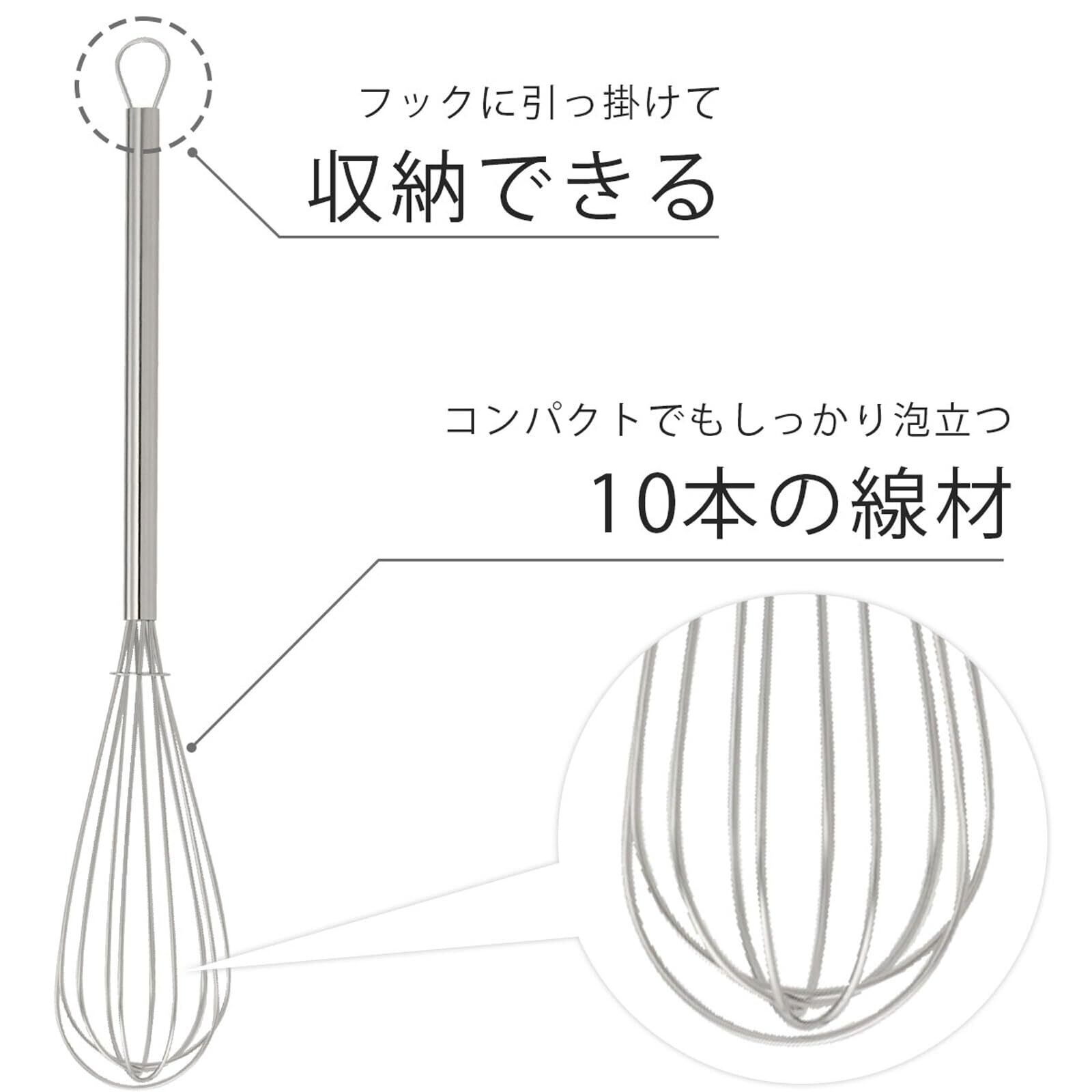 下村企販 コンパクト 泡立て器 小 21.5cm 食洗器対応 少量の泡立てに 小さな容器でも混ぜやすい ドレッシング作り 溶き卵 水溶き片栗粉 頑丈 ホイッパー ウィスク ステンレス バレンタイン 製菓 お菓子作り 43286