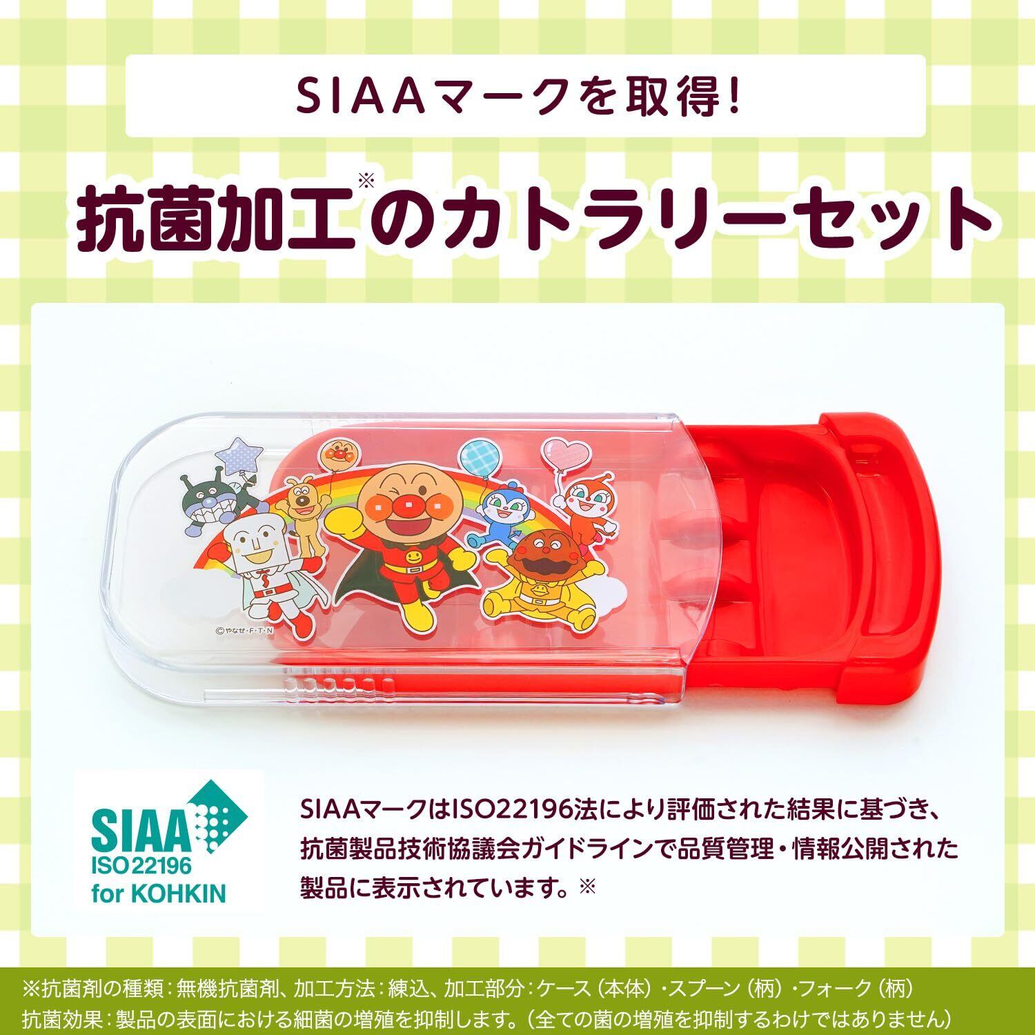 レック アンパンマン 抗菌 スライド 3点セット (フォーク スプーン 竹箸) レッド/SIAA抗菌/なまえスペース付き/