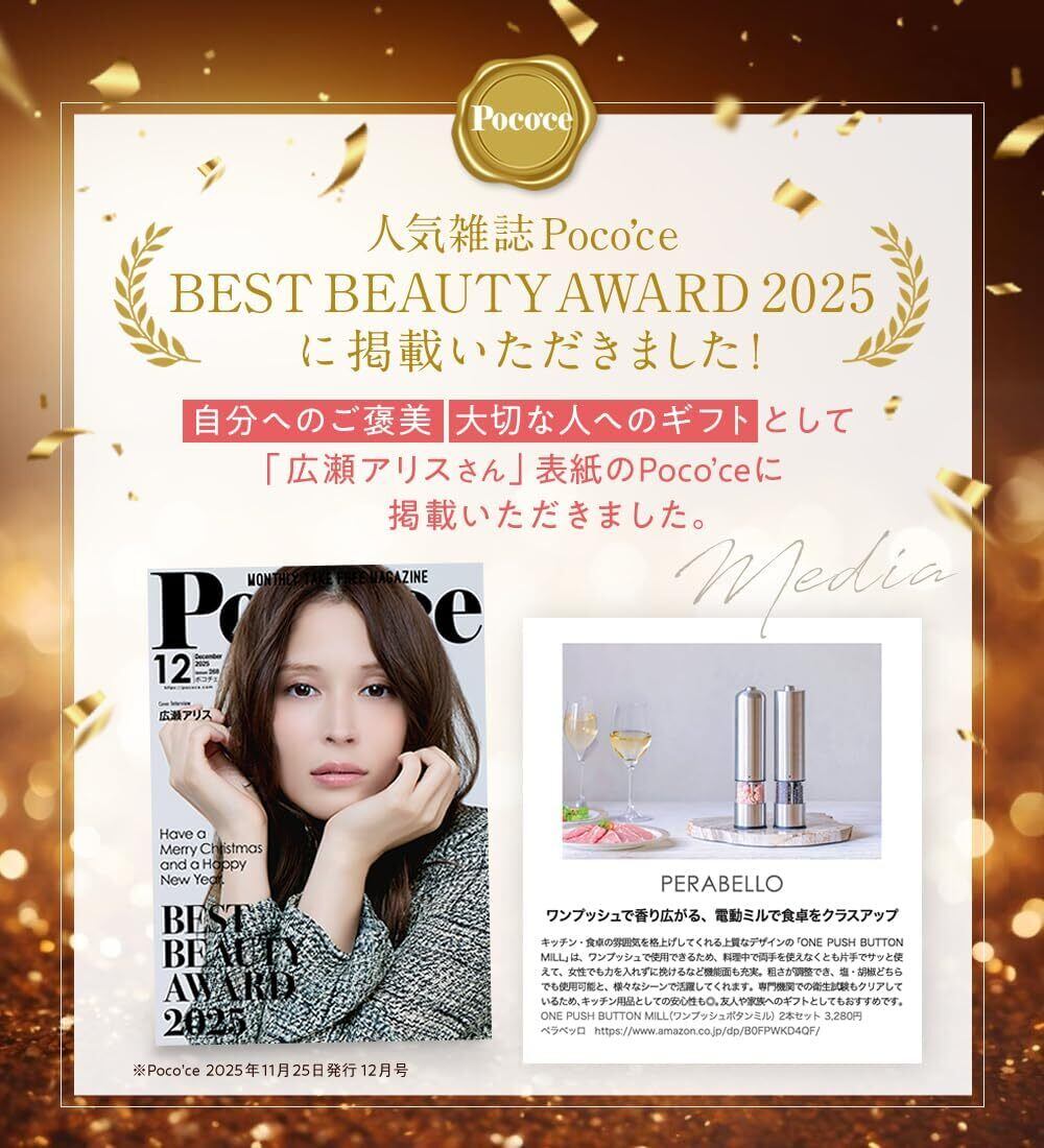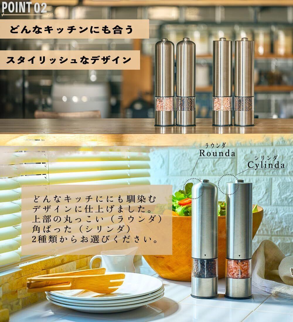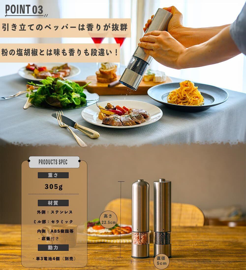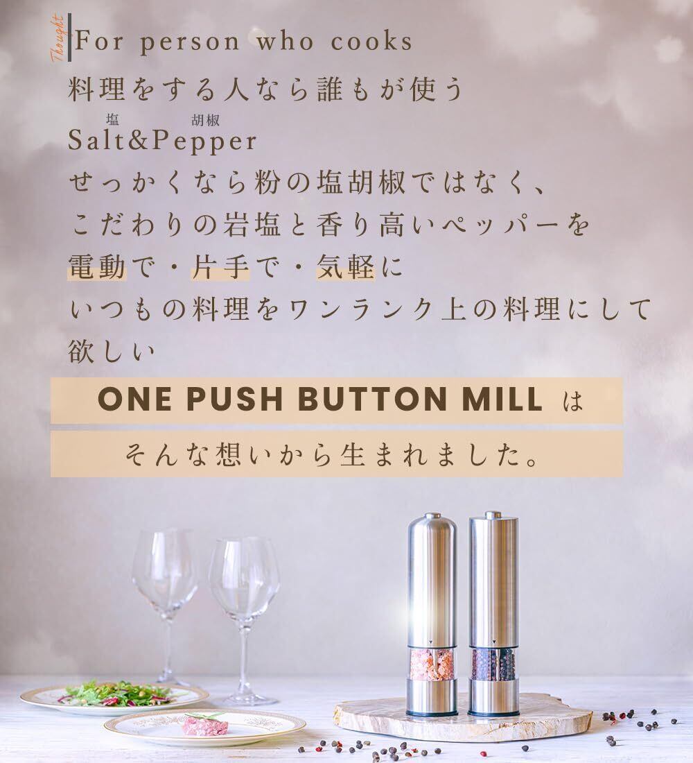 ONE PUSH BUTTON MILLペッパーミル 電動 ソルトミル 電動ミル スパイス ペッパー 岩塩 黒胡椒 コショウ ラウンダ (1)