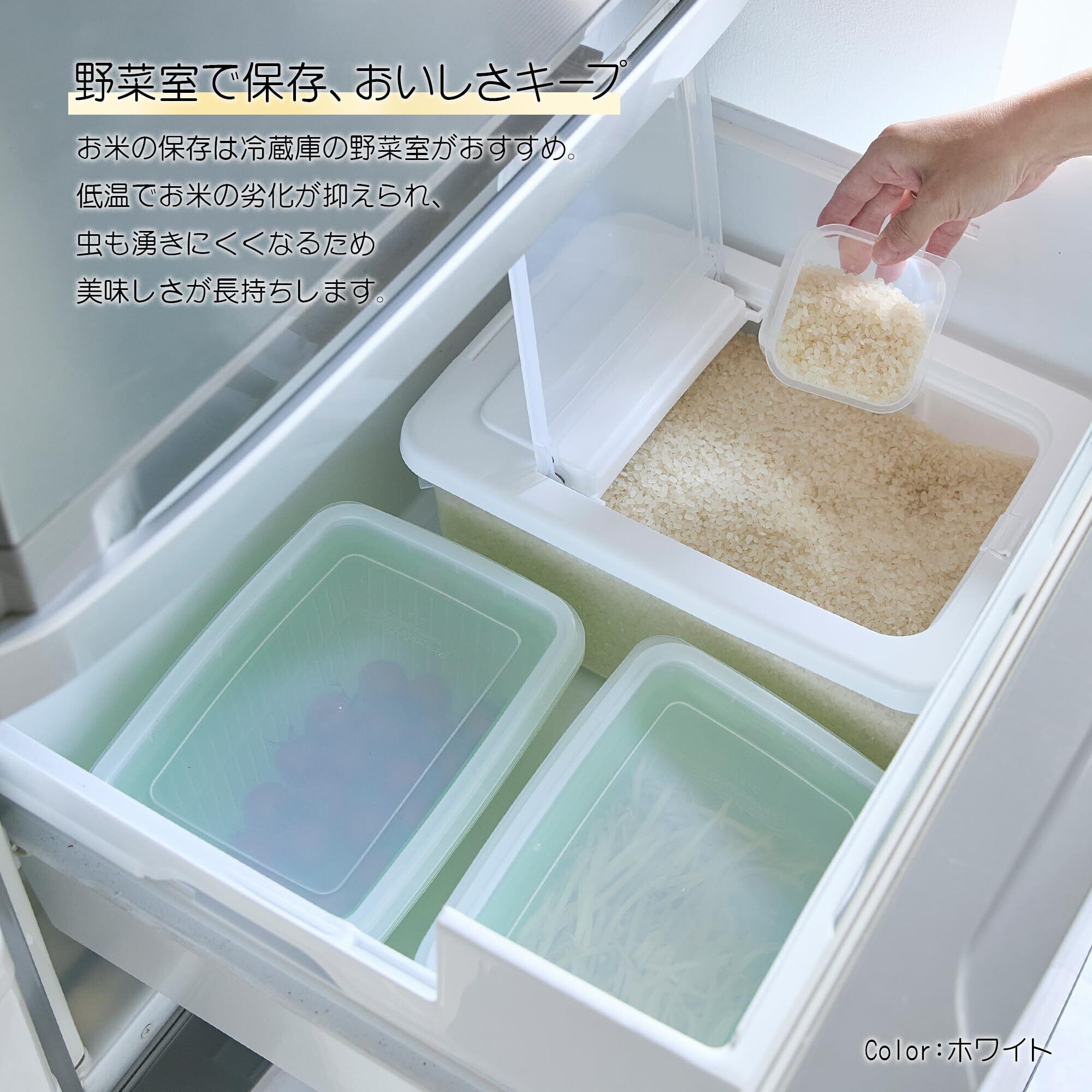 計量カップ付きで片手で簡単に開閉できるコンパクトなお米ケース。透明で中身が見えるのでお米の残量が一目でわかる。シンク下にも収納可能なコンパクトなサイズ。システムキッチンでも使えます。安心安全の日本製。