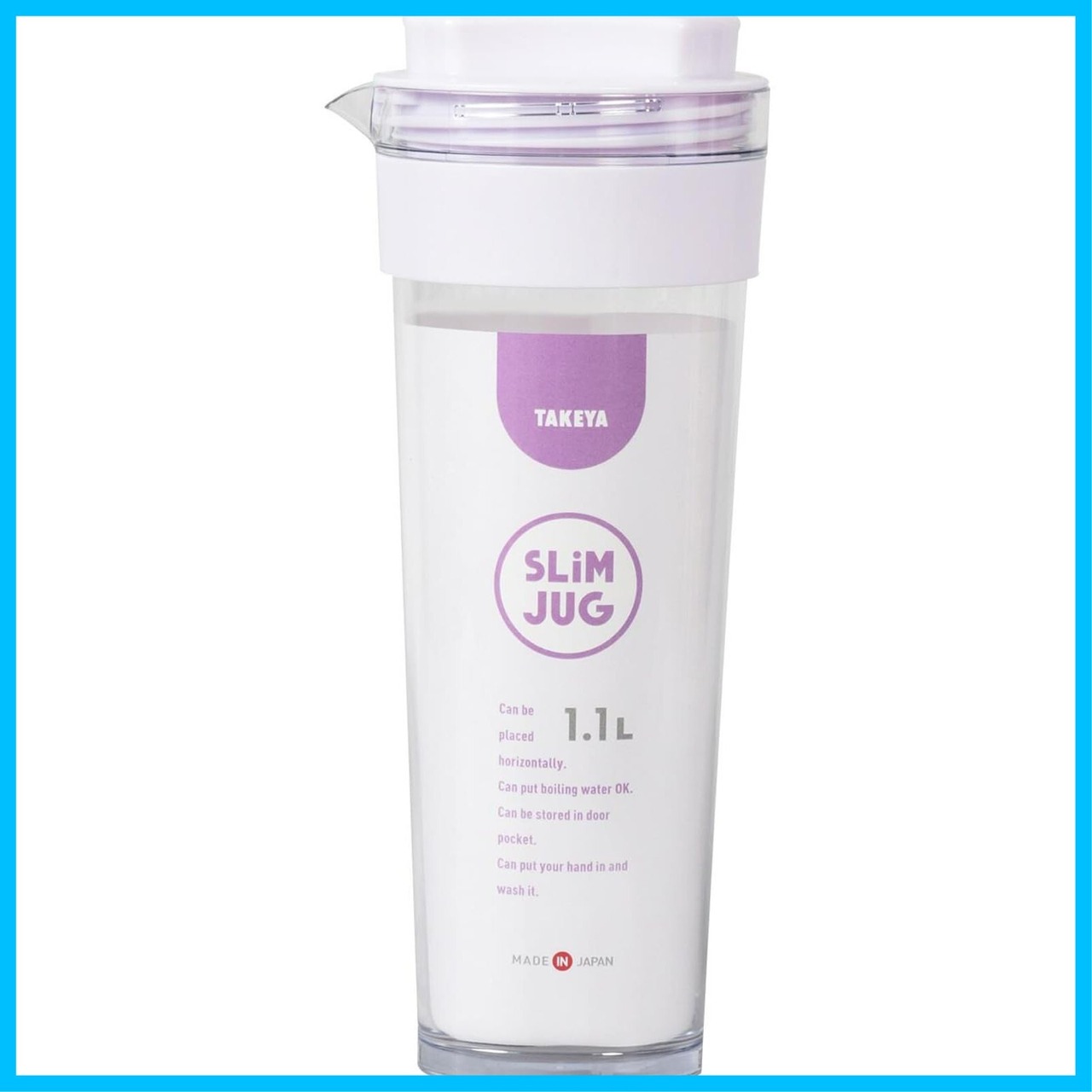 タケヤ化学工業 TAKEYA スリムジャグⅡ 1.1L ソフトパープル 冷水筒 耐熱100℃ 横置きOK 広口でお手入れ簡単 ドアポケットの前列に スリムタイプ