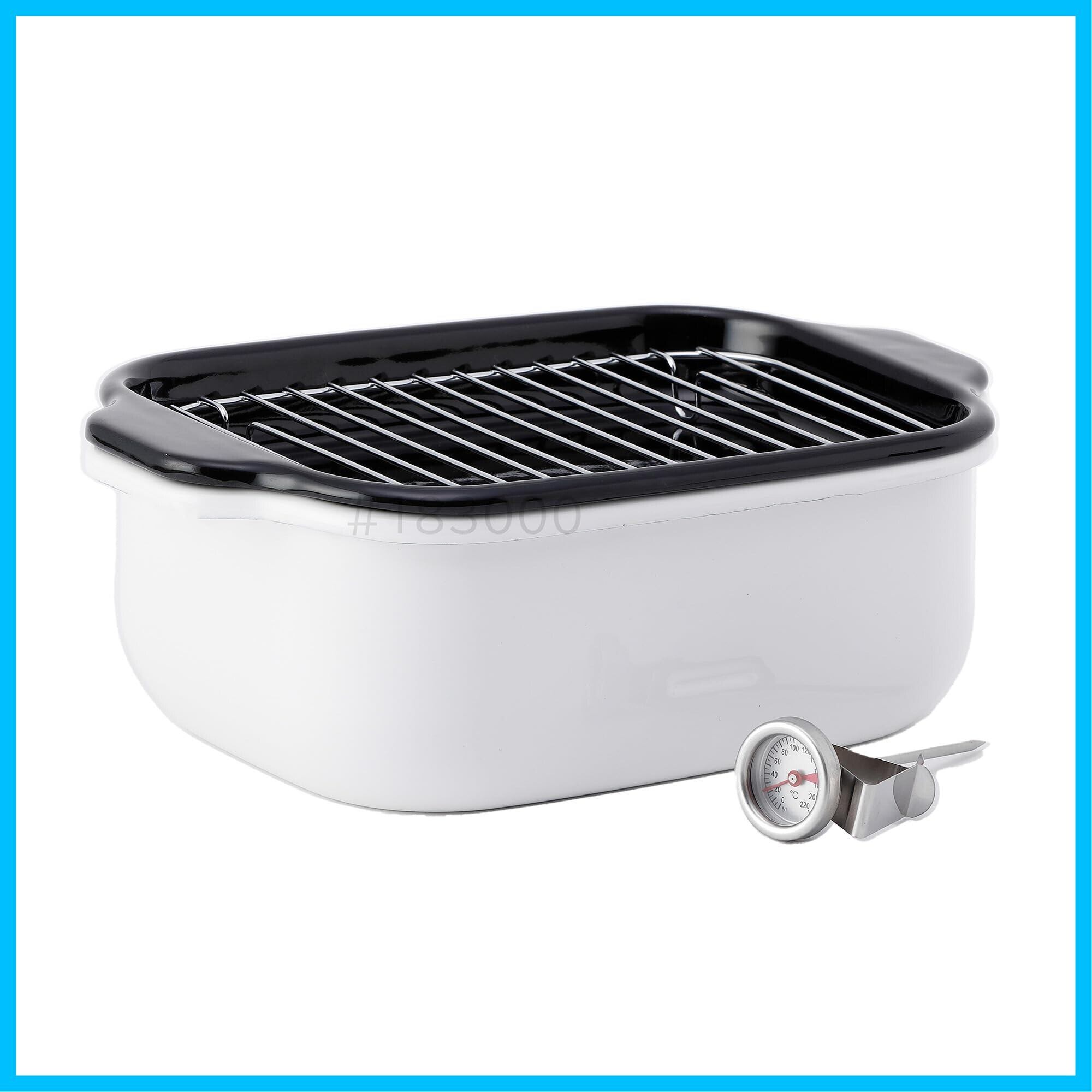 バット、スノコ、温度計付き。ホーローは鉄素材だから熱伝導と保温性に優れ揚げ物がカラッと上がります