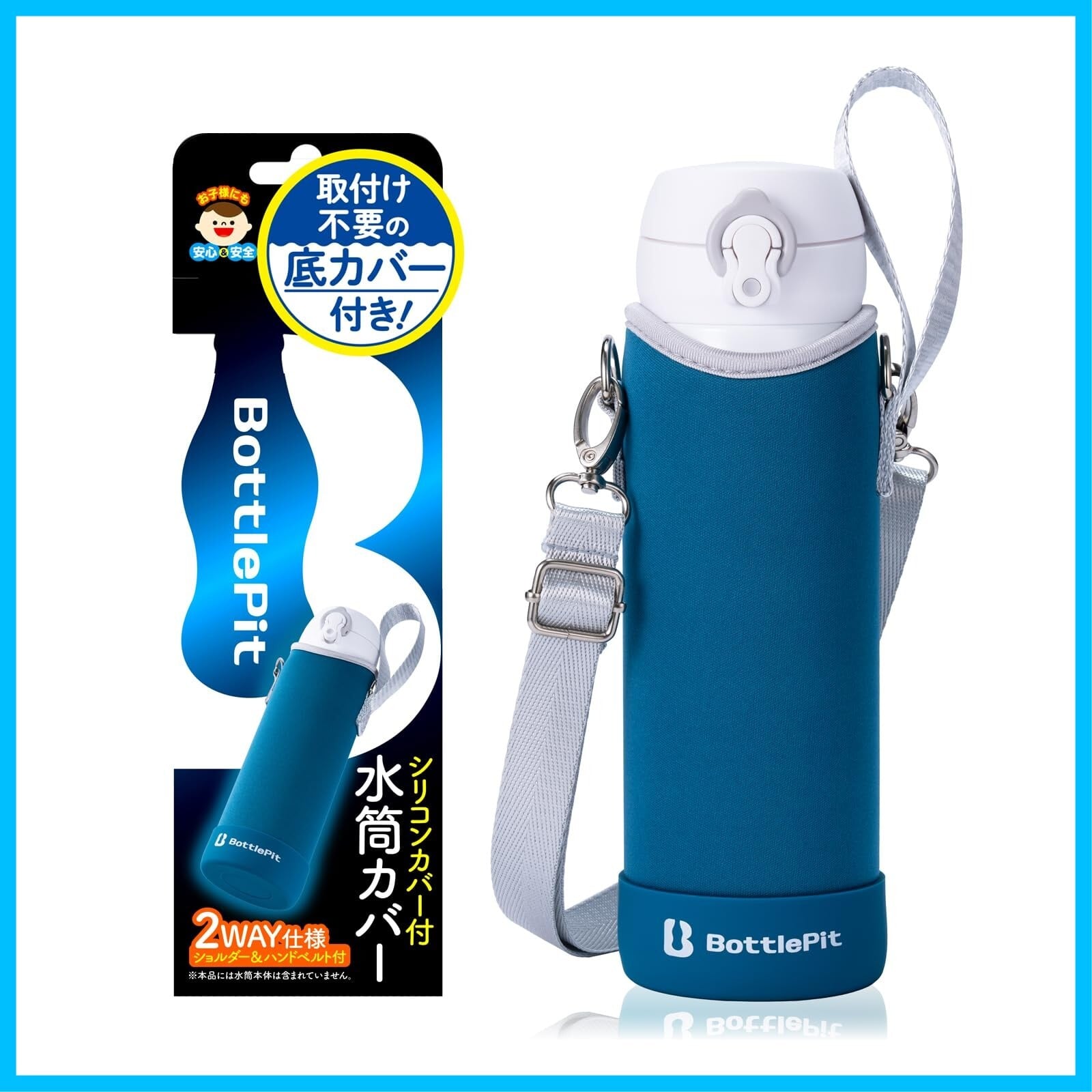 取付け不要の底カバー付き 水筒カバー 500 ml用(ブルーサファイア)