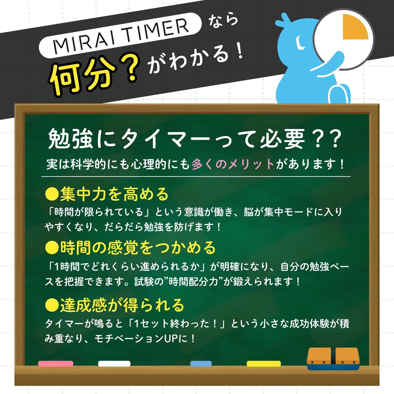 【MIRAI TIMER】ミライタイマー「未来のための時間」は、勉強・料理・ミーティング・フィットネスなど様々なシーンで活躍します。