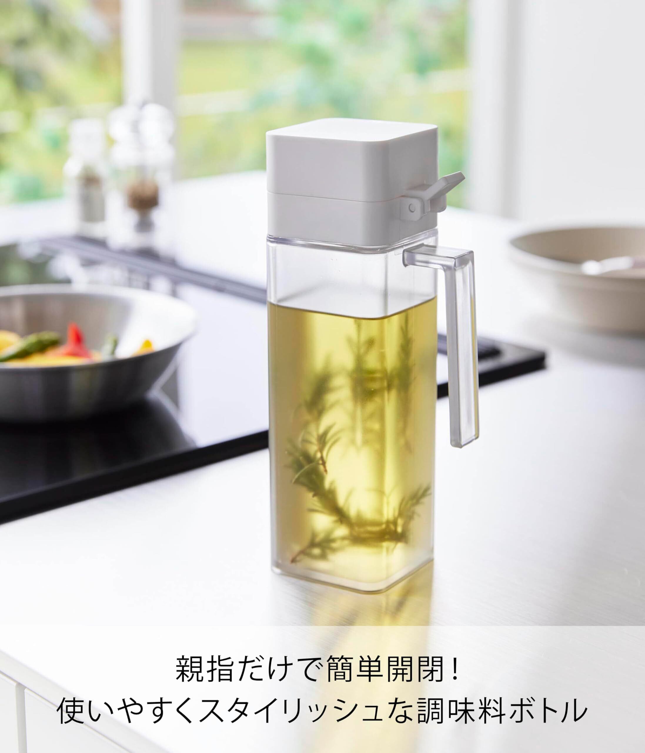 液だれしにくいノズルで、蓋は親指で簡単に開閉でき、開いた状態を保ちながら注ぐことができます。