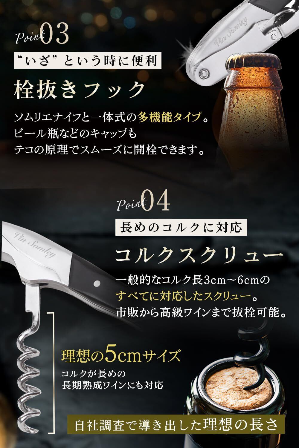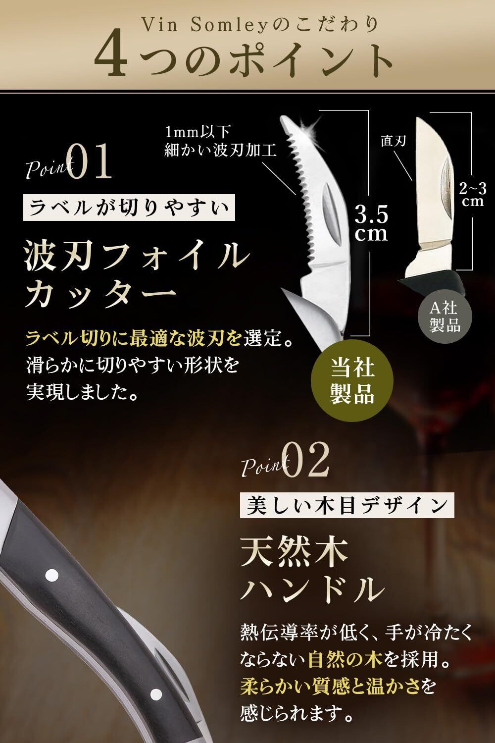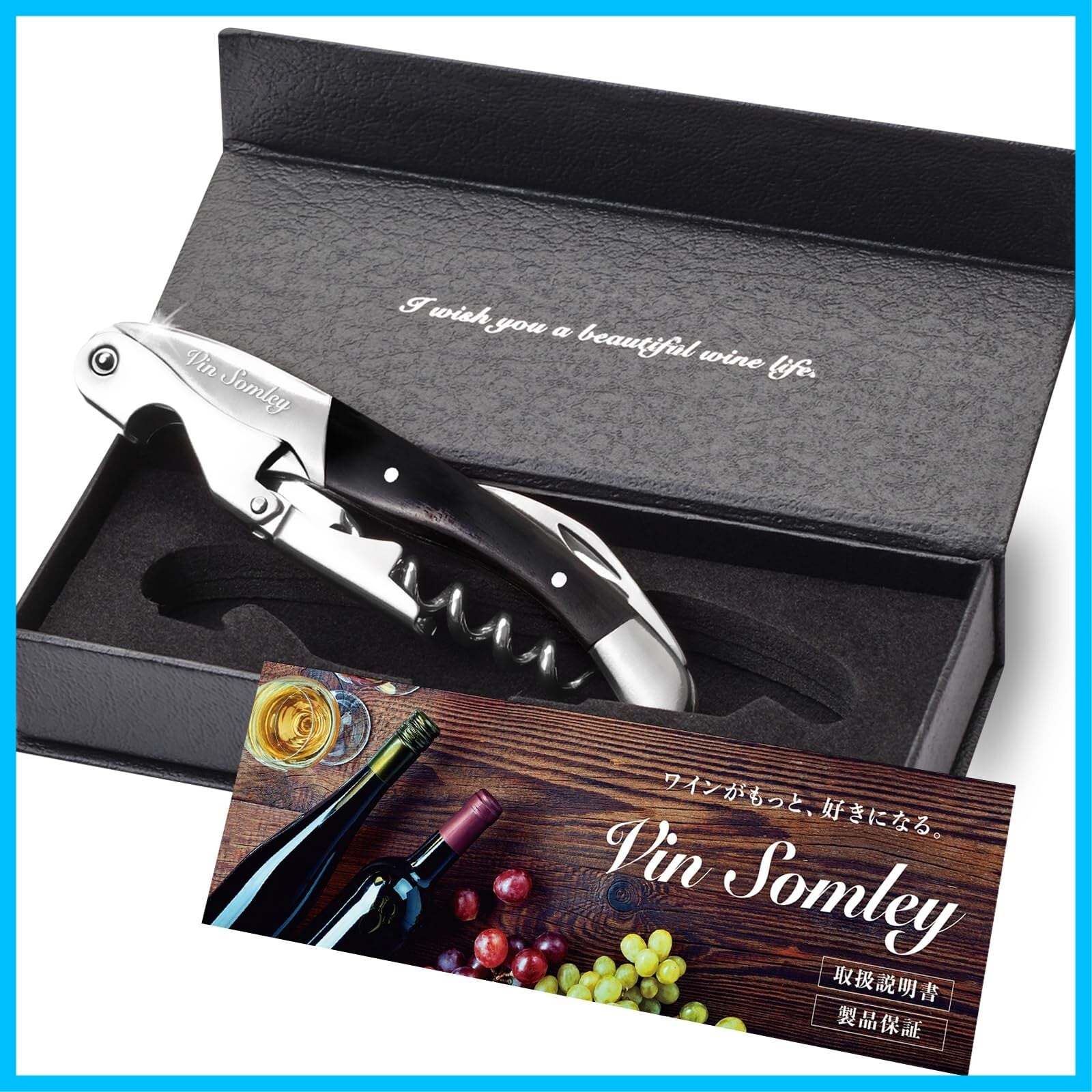 Vin Somley ソムリエナイフ 黒檀(エボニー)製 ダブルアクション ワインオープナー コルク抜き 栓抜き 二段式 取扱説明書付き