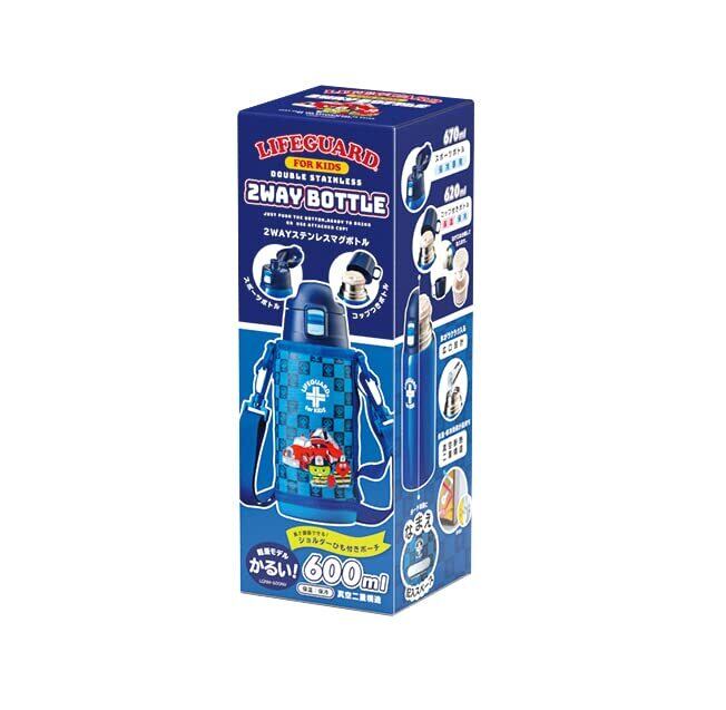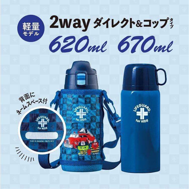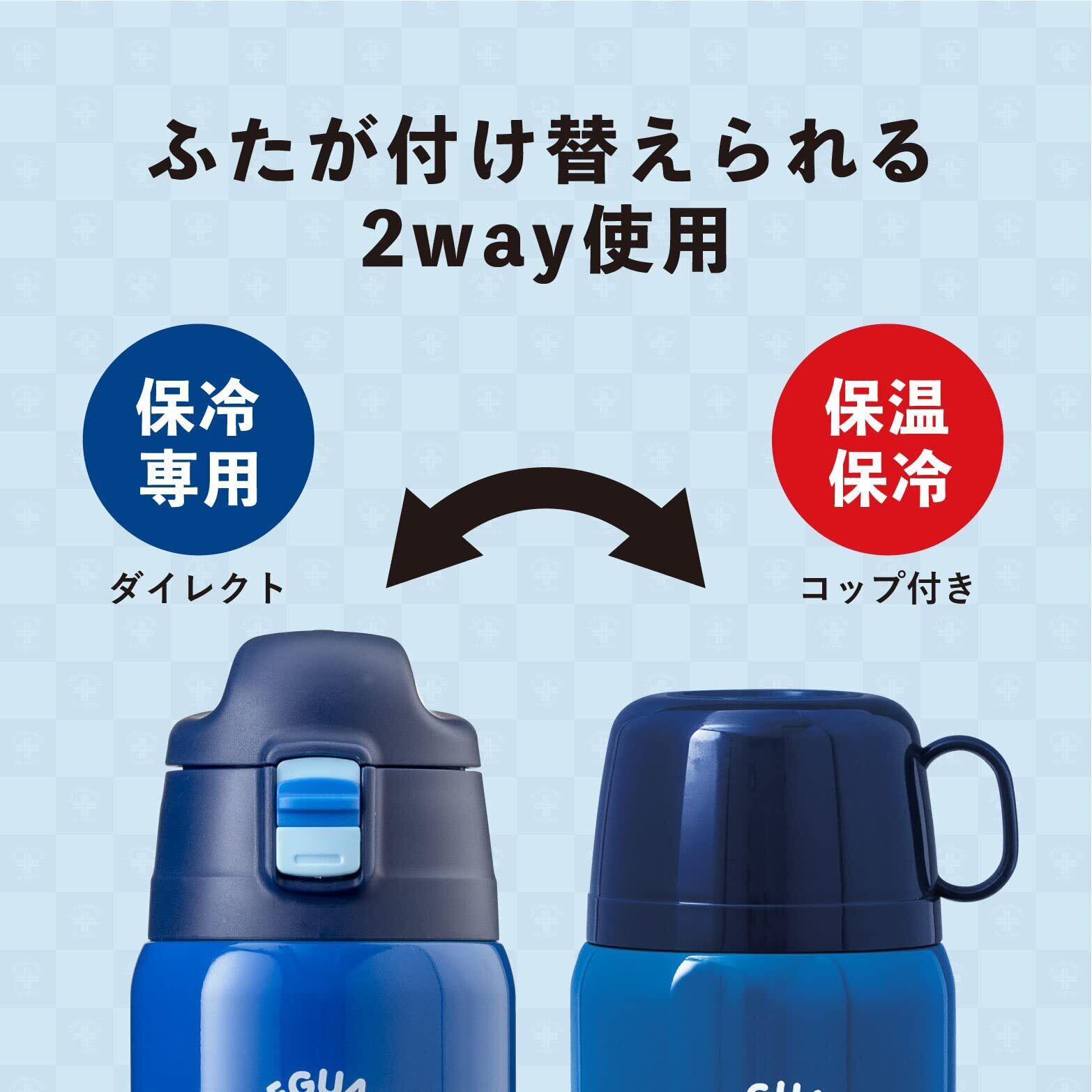 アトラス 水筒 670ml 保温 保冷 軽量 子ども 直飲み コップ付 2WAY ポーチ付 ガチャピン ムック ライフガード ネイビー LGNW-600NV