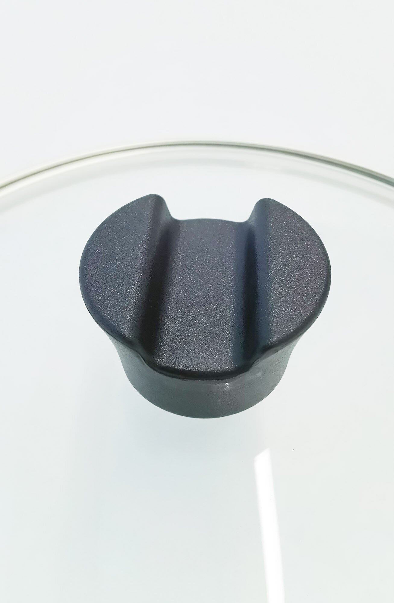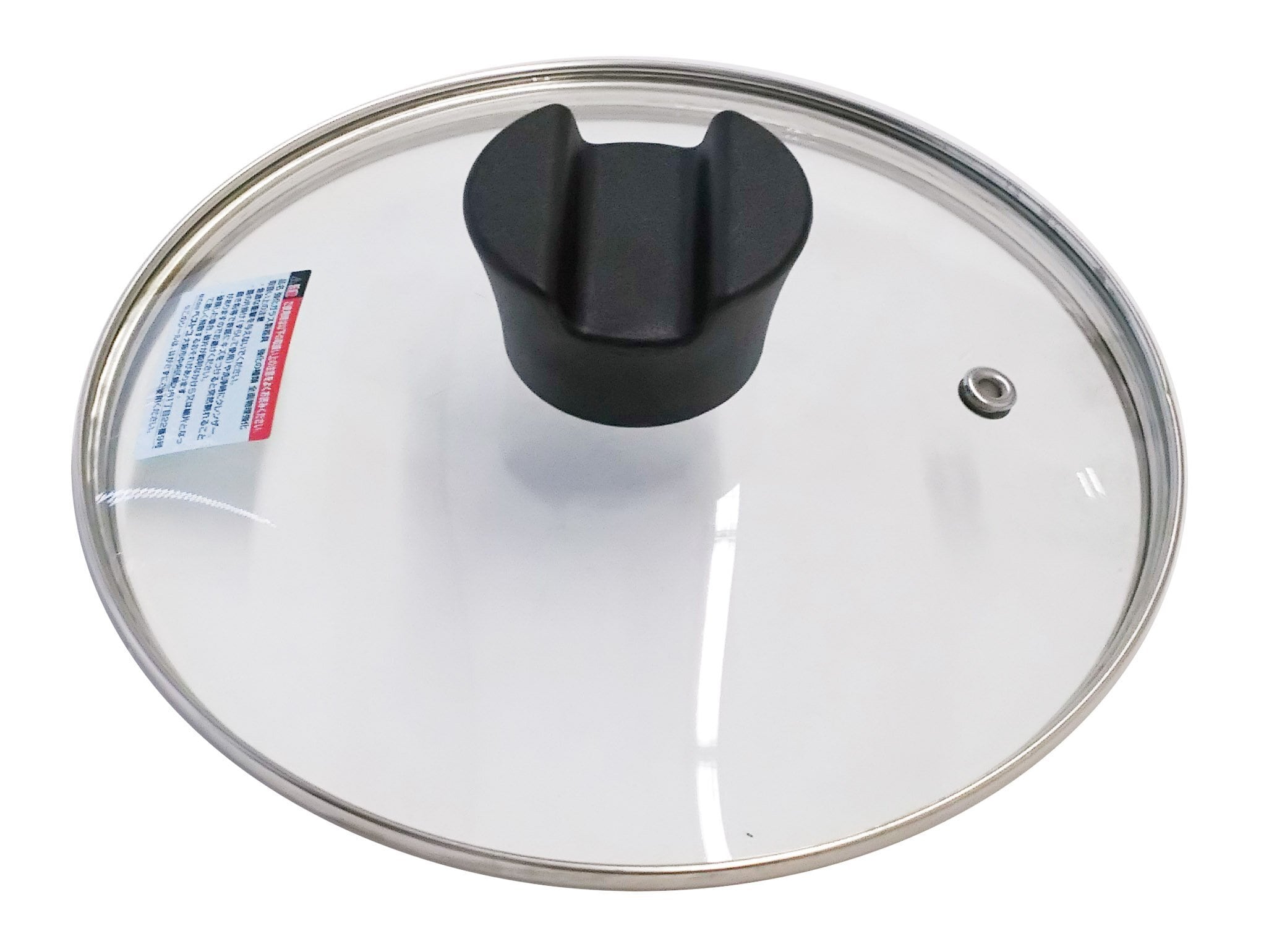 料理のでき具合がよくわかるガラス蓋です。つまみの上に菜箸やお玉が置ける便利なタイプです。