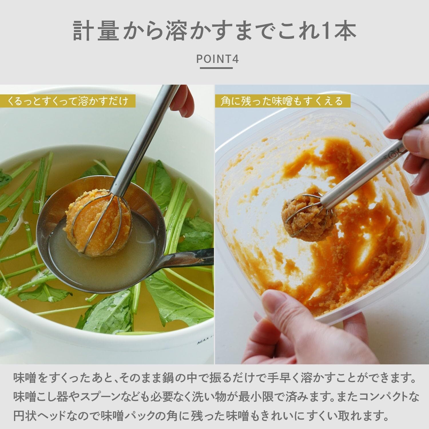お味噌に差して、くるっと回すとお味噌をカンタンに計量でき、そのままお鍋で溶かせます。