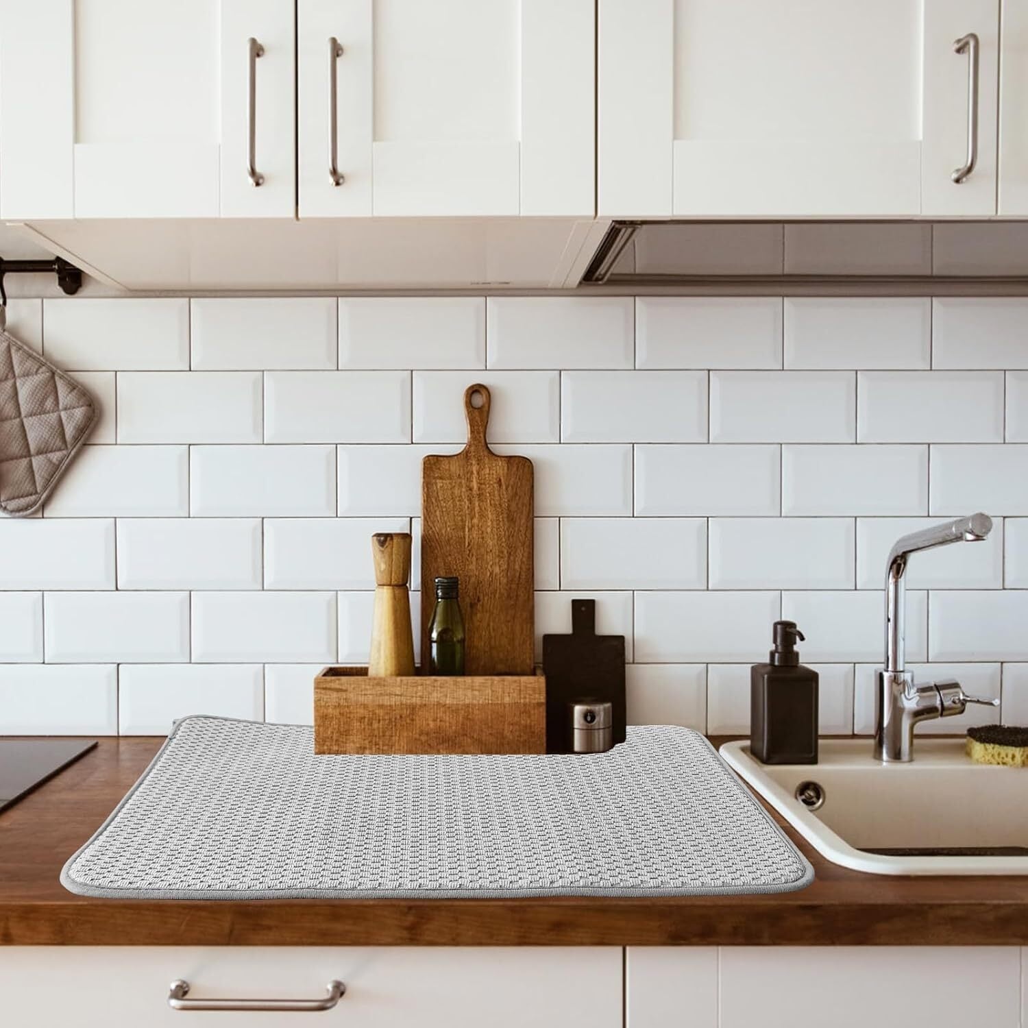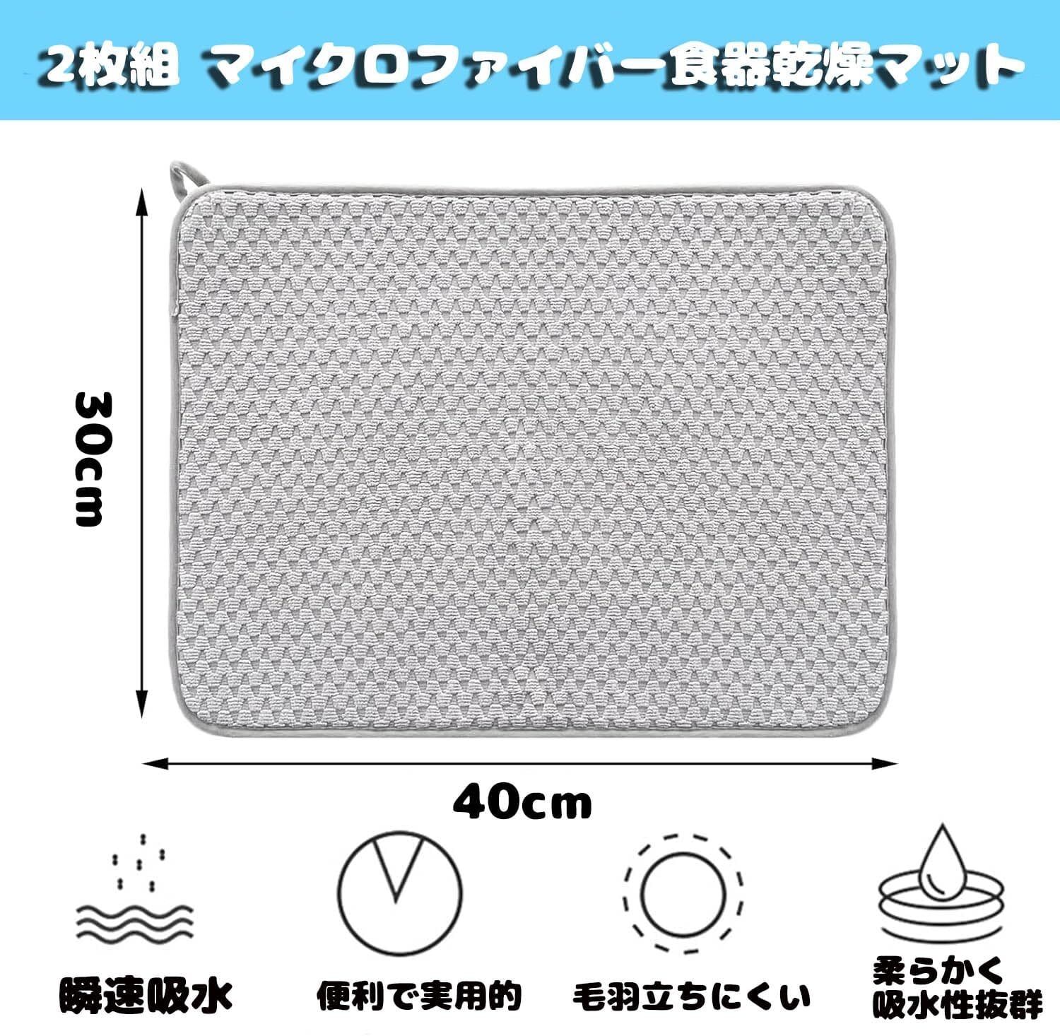 2枚セット食器 水切り 速乾吸水マット 水切りマット 抗菌 洗える 食器乾燥マット,キッチン 台所 洗い物 水切り 30x40cm グレー