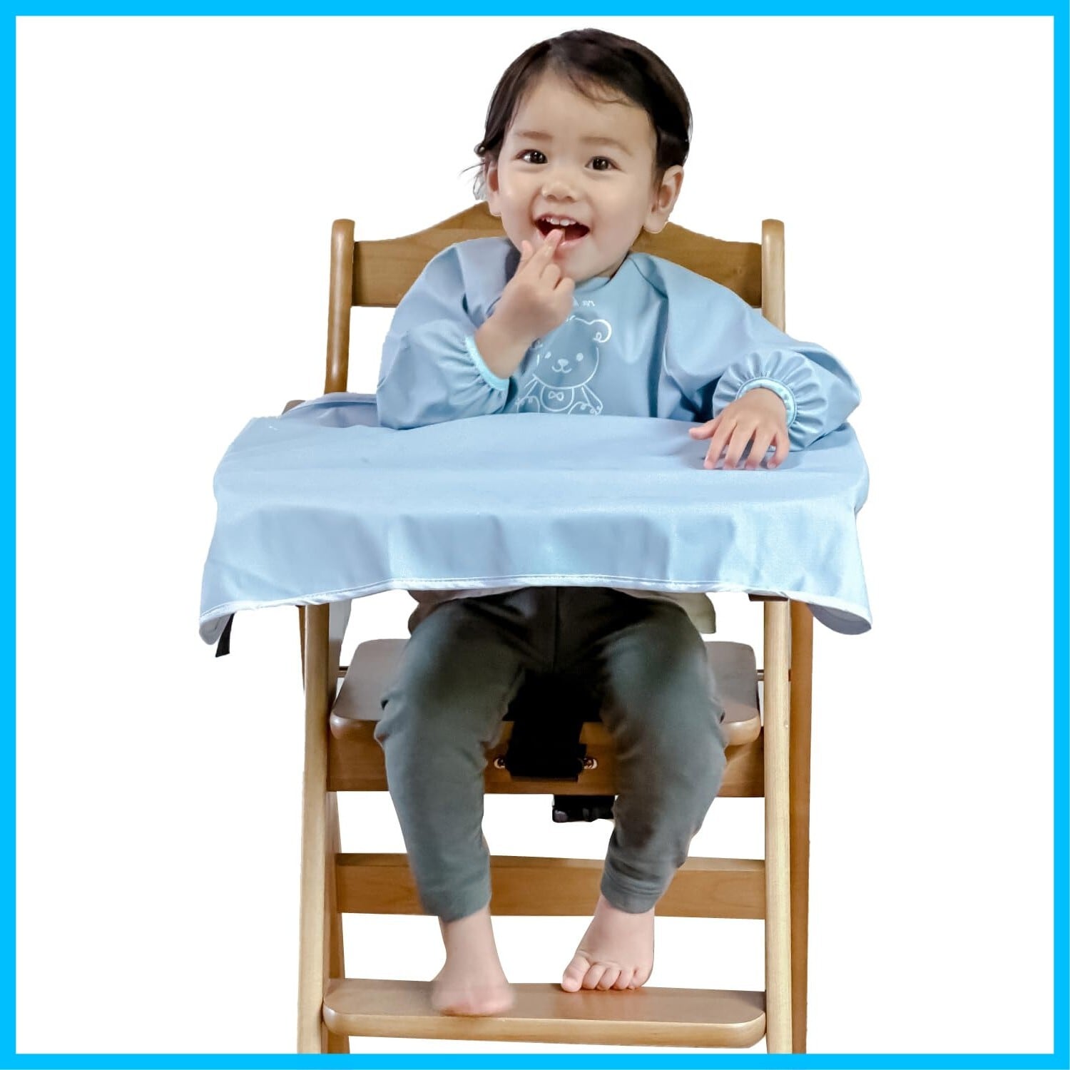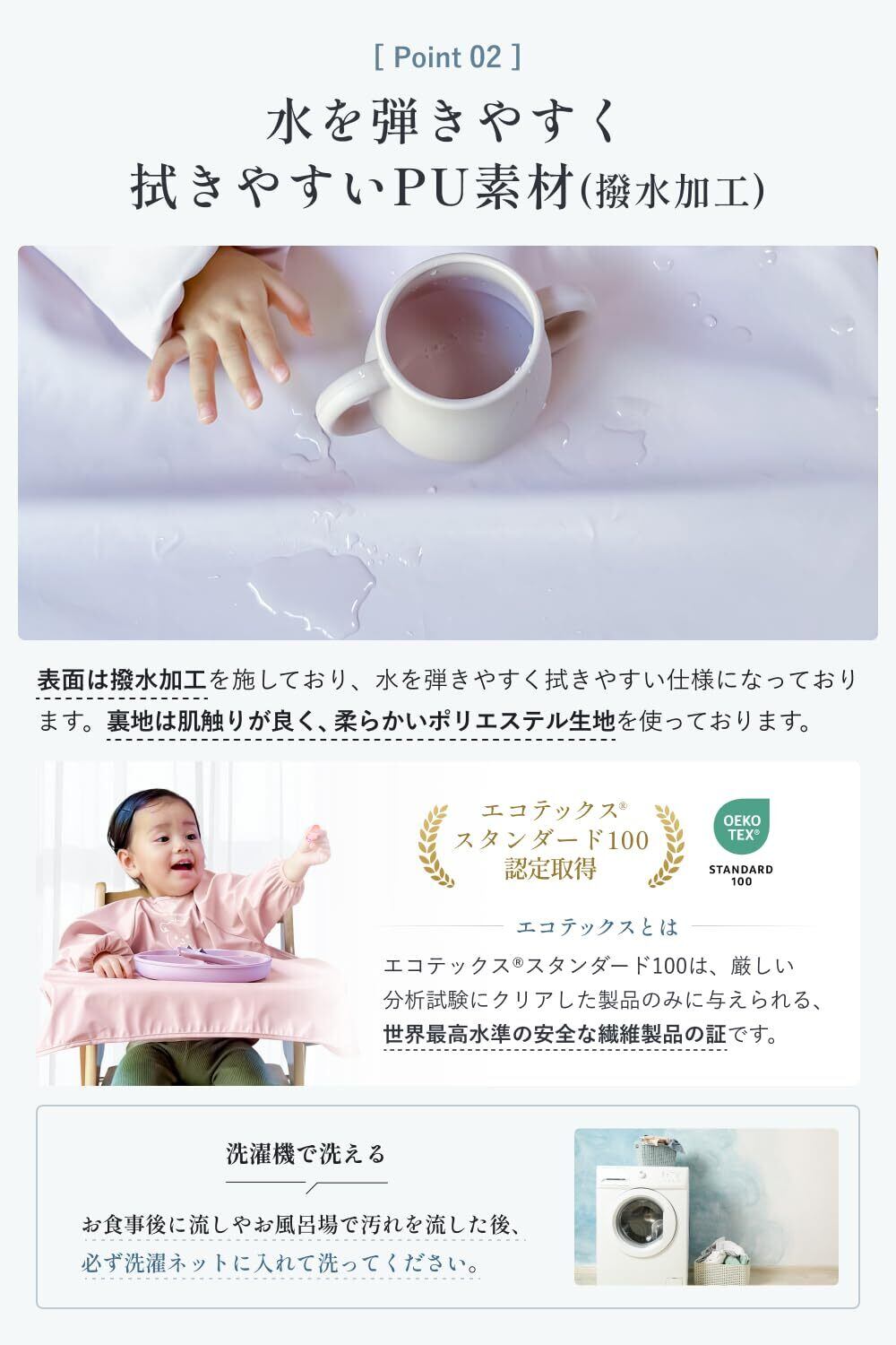 お食事エプロン 長袖 撥水加工 離乳食 ベビー ベビーエプロン テーブルクロス 一体型 紐 男の子 女の子 洗濯機対応 PU素材 1歳 2歳 3歳 フリーサイズ