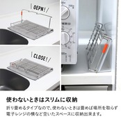 使わないときはサッと折りたたんでわずか3.5cmとスリムに。引き出しや棚のちょっとした隙間にしまえて、必要なときだけさっと広げて使えます。限られたキッチンの収納空間も有効に活用できます