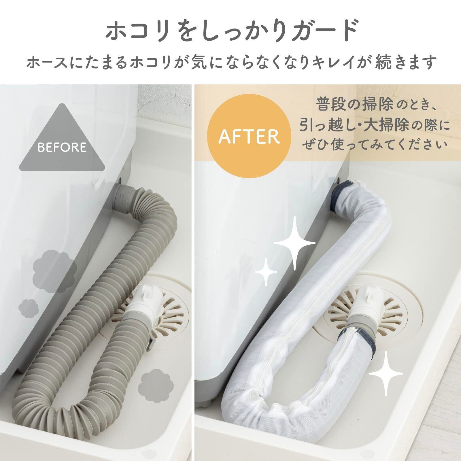ダイヤ フランドリー 排水ホースカバー 洗える洗濯機排水ホースカバー 長さ80cm以内対応 ホワイト ホコリ防止 繰り返し使用可能 排水口 取り付け簡単 掃除 Daiya FLaundry 058165
