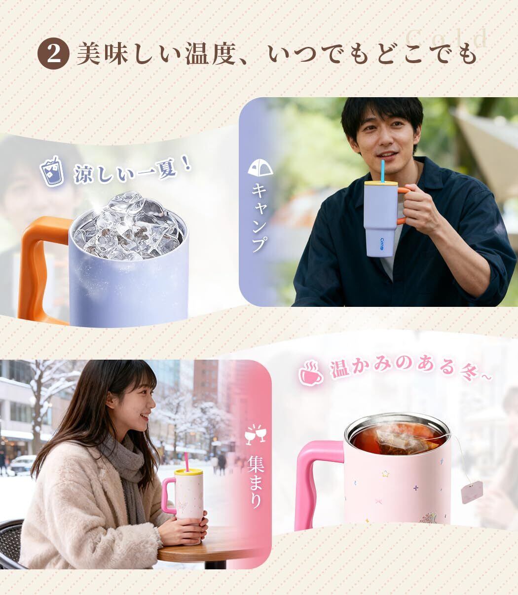 ✨【真空断熱でずっと美味しくキープ】✨ 内側は食品にも使える安心の304ステンレス鋼 魔法みたいな真空断熱構造だから、冷たいドリンクはずーっとひんやり、温かいドリンクはほかほかのまま