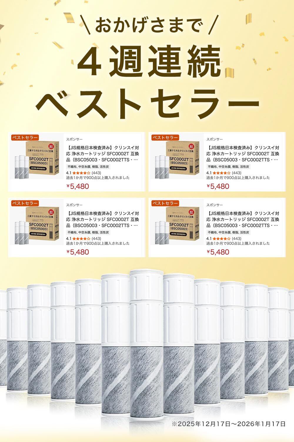 【対応商品】 スパウトインタイプ 浄水器(水栓一体型)交換用 浄水カートリッジ BSC05003 / SFC0002T に互換性のある商品(※純正品ではありません)