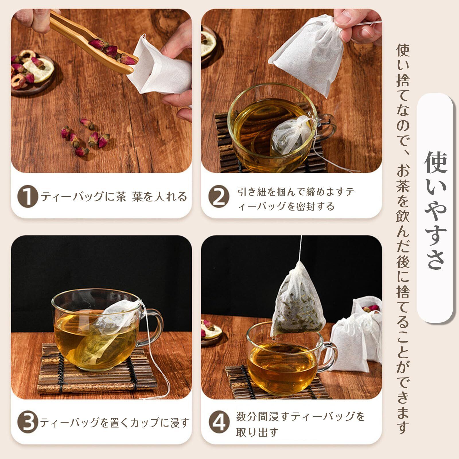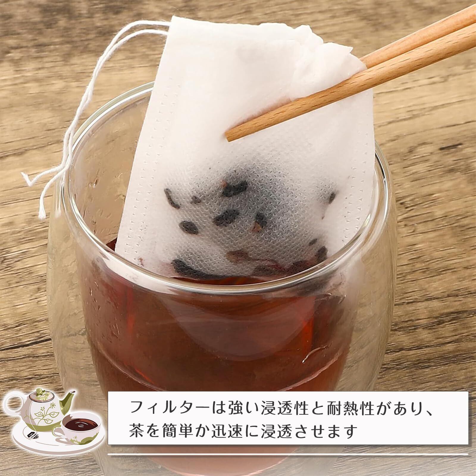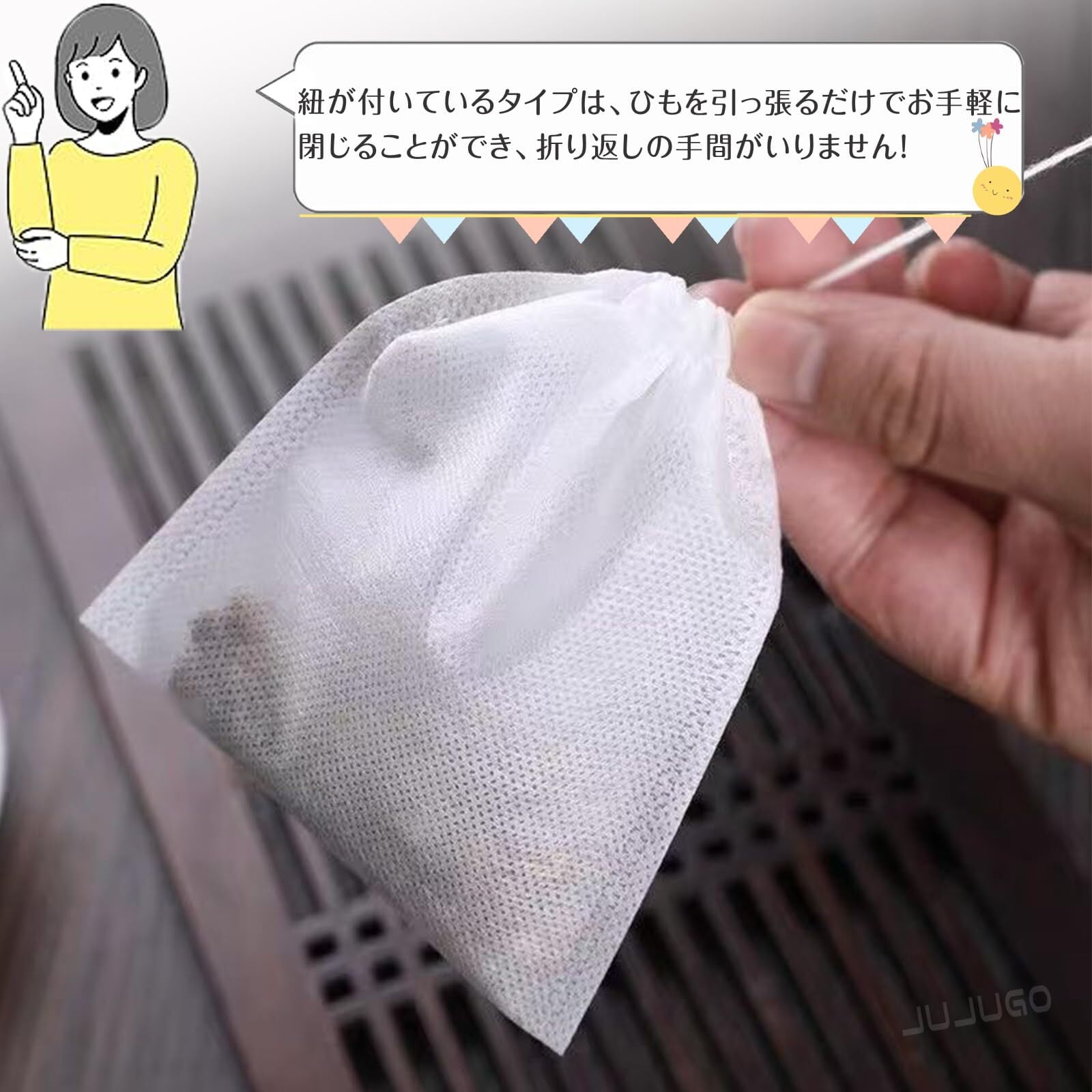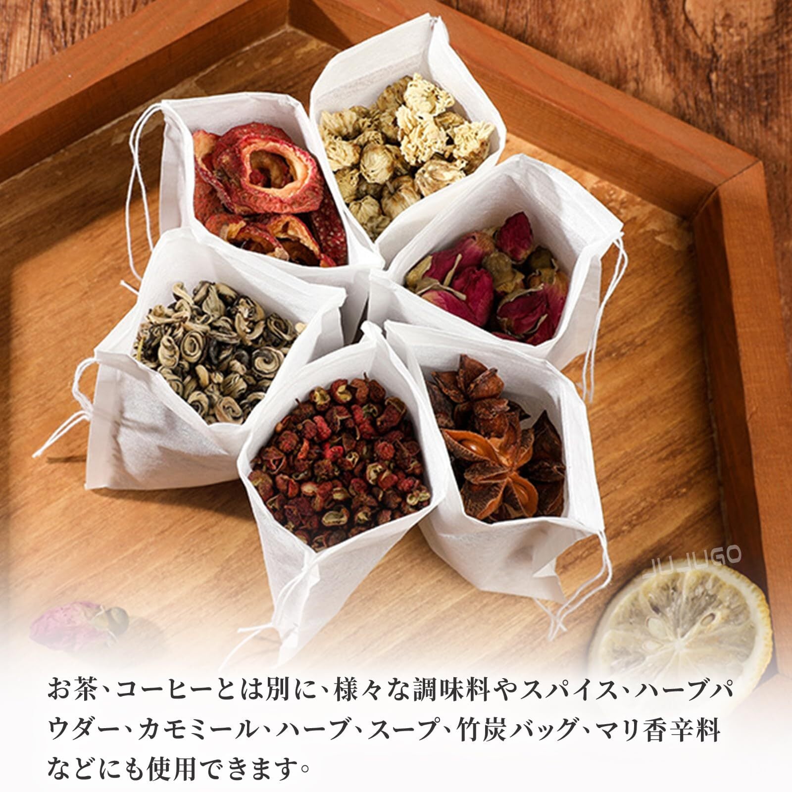お茶バッグ お料理パック 使い捨て空の袋100枚 不織布 未漂白 巾着付き お茶パック コーヒーパック スパイスバッグ 強力浸透 天然素材 ルースリーフ対応