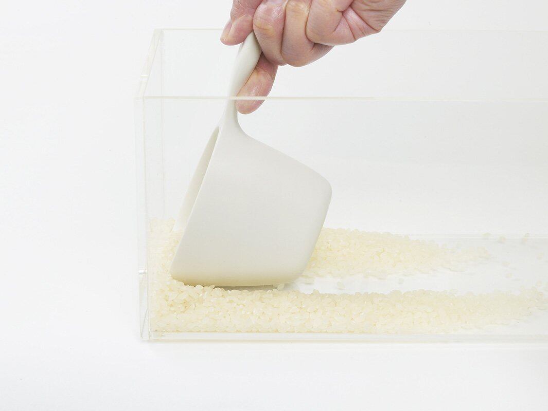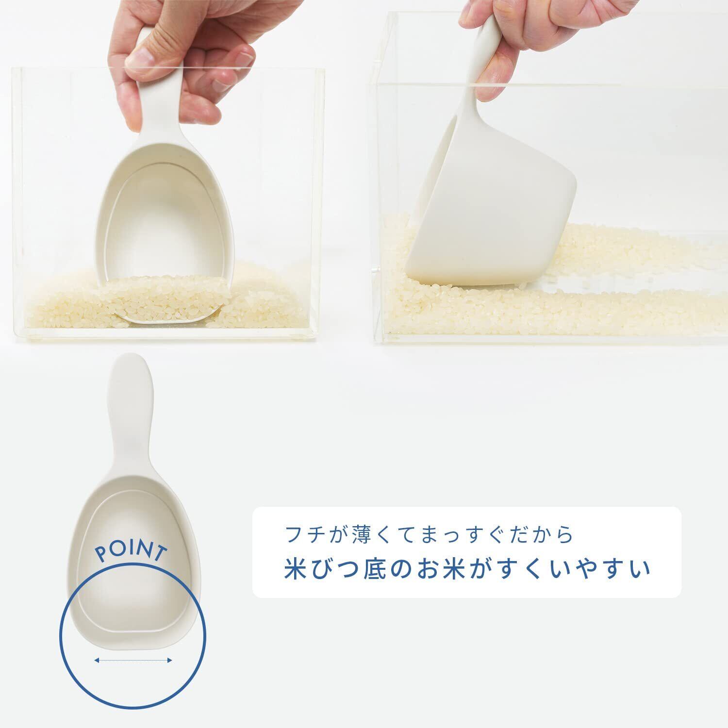【米びつの底まですくえる】米びつ底のお米がすくいやすいように、フチを薄くまっすぐにしています。柄が長いので米びつは勿論、2kg袋に入れても使いやすいサイズです。