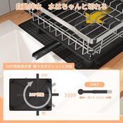 【自動排水&上段取り外し可能な設計】排水トレーの底は真ん中に排水パイプが接続され、排水パイプは360°回転でき、長さも調整できるので、排水トラブルとサヨナラでき、水が溜まるのを防ぎ、衛生を維持できます。水切りラックは2段式で、上段は取り外し可能です。単体でもシンクにも収納できてキッチンのスペースを有効に活用できます。