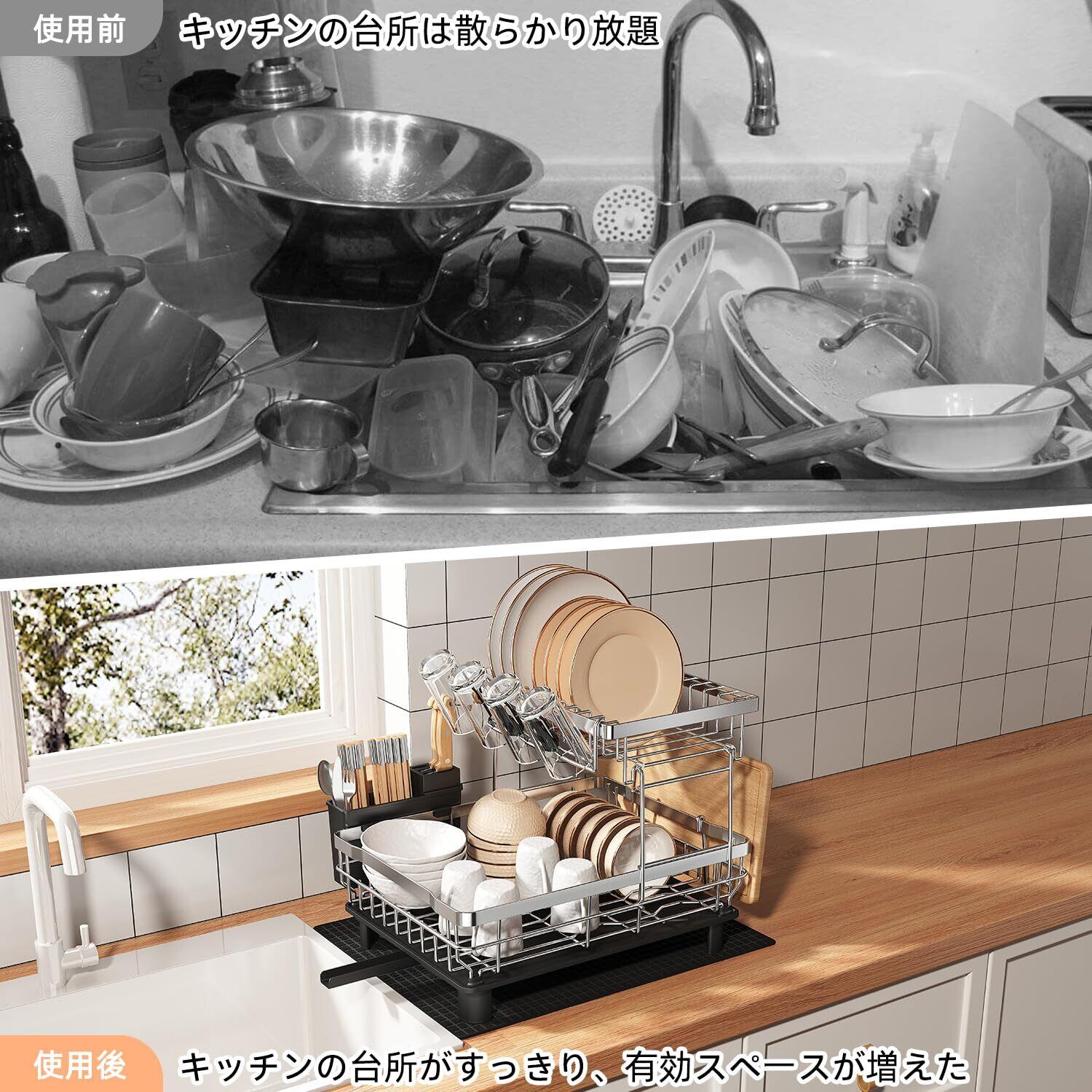 【組み立て簡単&使用便利】この水切りかごは追加の工具なしで簡単に組み立てることができ、説明書に従って約5分間で設置できます。本食器乾燥ラックは効率的な乾燥スロットがあって、皿はきれいに立てて置くことができます。