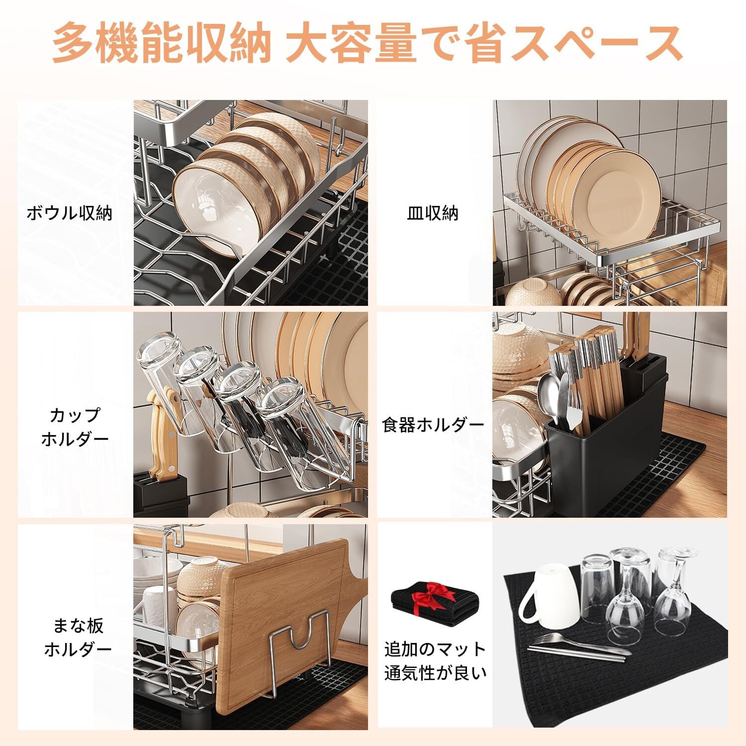 【大容量収納食器乾燥ラック】多様的な付属品:ボウルラック*2、まな板ラック*1、包丁と箸セットラック*1、コップラック(最大4つコップを収納可)*1。スペースを有効活用して、キッチンがすっきりしました!
