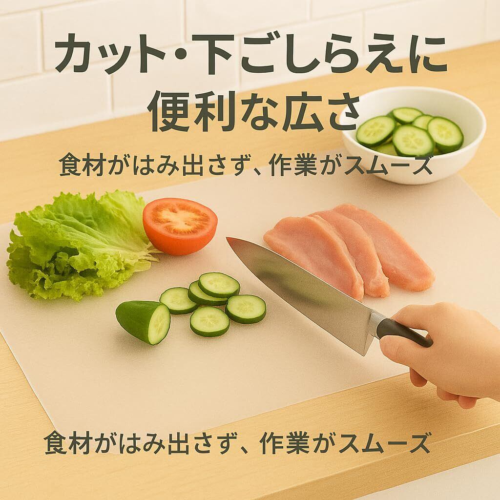 【滑り止め加工で作業安定】 裏面のグリップパターンで滑り止め。こね作業や盛付けなど日常の作業を安定サポート。強い刃物の直切りはキズの原因になるため避けてください。